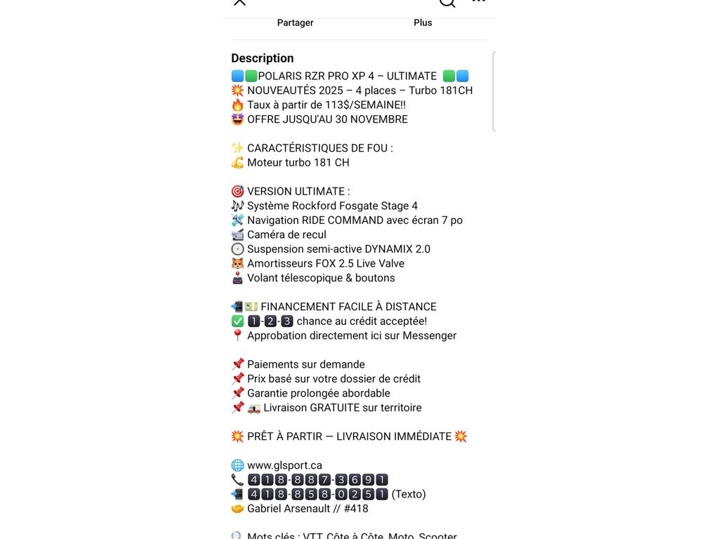Annonce # 1372839 Motoneige à vendre à Saint-Gervais : Polaris RZR Pro XP 4 2025 Saint-Gervais