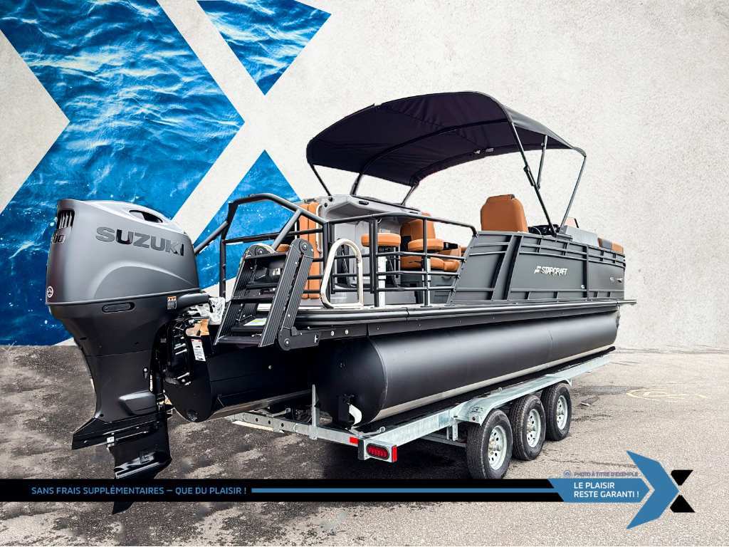 Ponton SLS-3 Bar moteur 200 hp stealth inclus ?? Starcraft SLS 3 Bar 2026 – Luxe, Performance et Design Réinventé ! ???? Le Starcraft SLS 3 Bar 2026, équipé du puissant moteur Suzuki 200 HP Stealth, nouveauté de cette année chez Suzuki, combine performance sportive et confort haut de gamme. Avec ses 3 quilles HMX et ailerons sport, ce ponton offre des sensations de navigation proches d’un bateau tout en assurant stabilité et maniabilité exceptionnelles. Son design 2026 repensé, sa console moderne, son nouveau type de plancher et son intérieur polyvalent vous permettent de profiter d’un bar convertible en grand bain de soleil. Les nouveautés exclusives, dont la nouvelle couleur noir mat et l’intérieur cognac, redéfinissent l’expérience sur l’eau. ?? Caractéristiques principales : ? Moteur Suzuki 200 HP Stealth – Performance dynamique et fiable. ? Longueur : 24'8'' – Parfait pour accueillir famille et amis. ? Capacité : jusqu’à 13 passagers – Convivialité assurée. ? Moteur maximal 300 HP – Potentiel de puissance supplémentaire. ? Tubes de 25 pouces – Maniabilité et stabilité accrues. ? Couleur Gris Mat – Élégance et modernité. ? Rambardes arrière noires matt powdercoat avec tour de tire intégré – Style sportif et fonctionnel. ? Plancher Teak Weave – Chic et durable. ?? Ambiance et confort premium : ? Bar convertible en grand lit bain de soleil ? Console de conduite redessinée et plateforme surélevée – Expérience de pilotage optimisée. ? Porte-gobelets illuminés – Praticité et touche haut de gamme. ? Salle d’habillage intégrée – Discrétion et confort. ? Volant Verona inclinable + direction hydraulique Seastar – Conduite fluide et précise. ?? Système audio et technologie : ?? Radio AM/FM/USB/AUX/Bluetooth Wet Sound – Connectez et profitez de votre musique. ? Système Audio Plus 225 – Puissance et clarté sonore. ? GPS profondimètre Hélix 5 – Navigation et relevés précis. ? Indicateur de trim – Ajustement optimal du moteur. ?? Performances et équipements supplémentaires : ? Lumières de navigation et d’amarrage – Sécurité garantie. ? Prise 12 volts + lumière de courtoisie – Praticité et confort. ? Toit bimini électrique entièrement redessiné – Modernité et facilité. ? Échelle Lillipad Revo – Idéale pour tous, incluant animaux et personnes à mobilité réduite. ? Ensemble 3 quilles HMX avec sous-plancher aluminium – Sensations sportives. ? Option toit full campeur – Pour prolonger vos séjours sur l’eau. ?? Un modèle 2026 qui redéfinit luxe et performance. Êtes-vous prêt à élever vos moments sur l’eau avec ce ponton d’exception ? Contactez-nous dès aujourd’hui pour réserver le vôtre ! ? La marque Starcraft Marine, chez Groupe Motoplex, offre des pontons et des bateaux stylés, polyvalents et sécuritaires à un excellent rapport qualité prix. Avec plus de 100 ans d’expérience en fabrication de bateau, Starcraft Marine est une marque établie et de confiance. De plus, une garantie à vie limitée plus une garantie complète de six ans assurent la durabilité de votre bateau. GARANTIE PROLONGÉE jusqu'à 4 ans disponible et plan d’entretien Financement approuvé — 1re, 2e et 3e chance au crédit! Testez-nous et trouvez la meilleure solution, au meilleur taux. Votre incontournable du financement ! PLEASE DON'T HESITATE TO CONTACT US, WE SPEAK ENGLISH AS WELL ! Nous prenons tout véhicule d’échange Prix Garanti. AUCUN FRAIS CACHÉS, prix affiché valide sur financement ou paiement comptant. *(taxe en sus) We speak English contact us. LIVRAISON PARTOUT AU Québec Mentions légales au financement, consultez notre site Internet. GARANTIE PROLONGÉE jusqu'à 4 ans disponible et plan d’entretien disponible uniquement chez groupe motoplex
