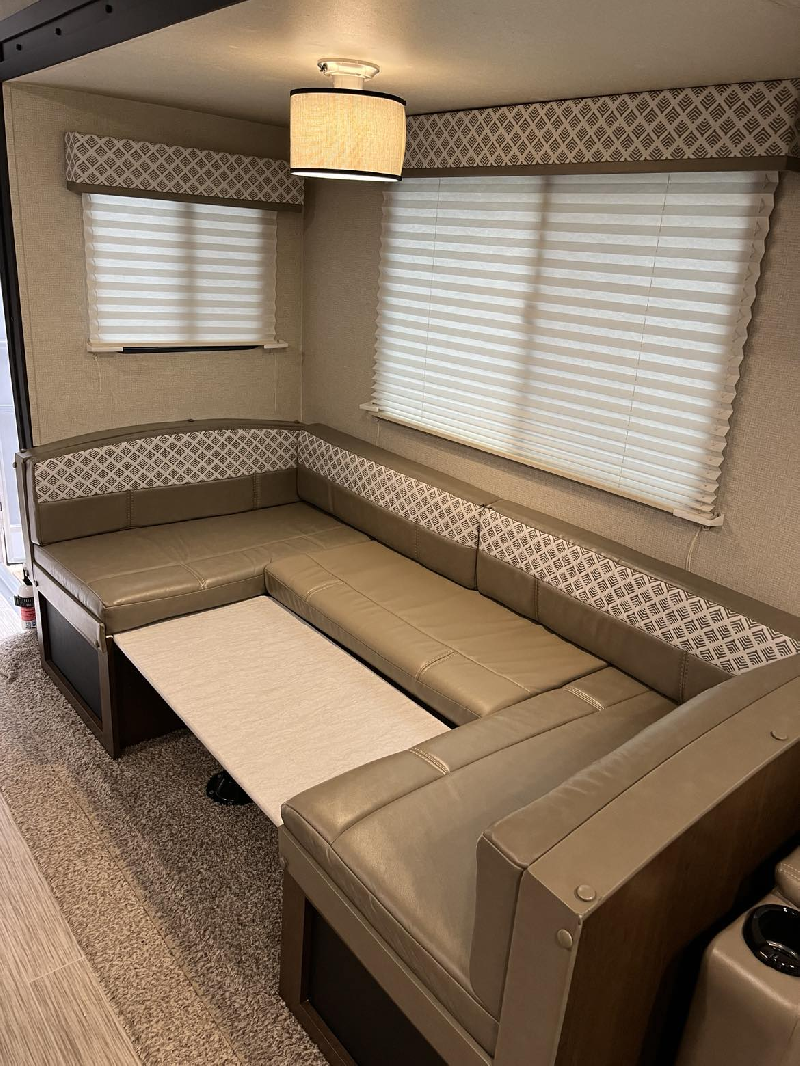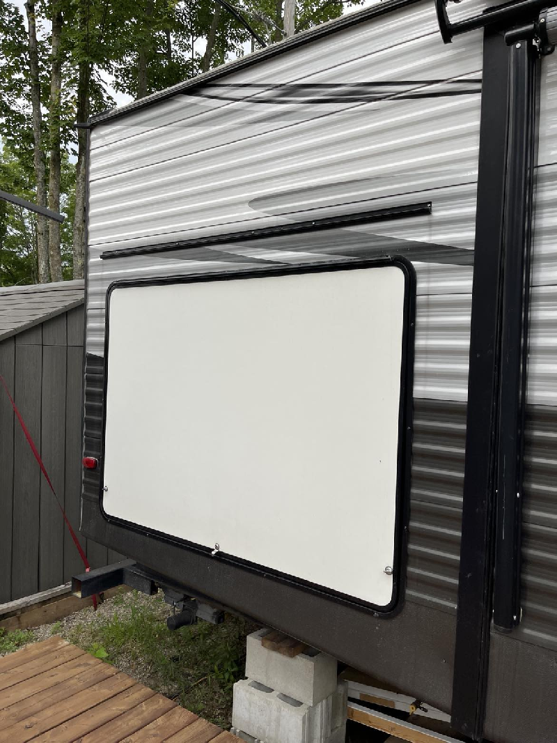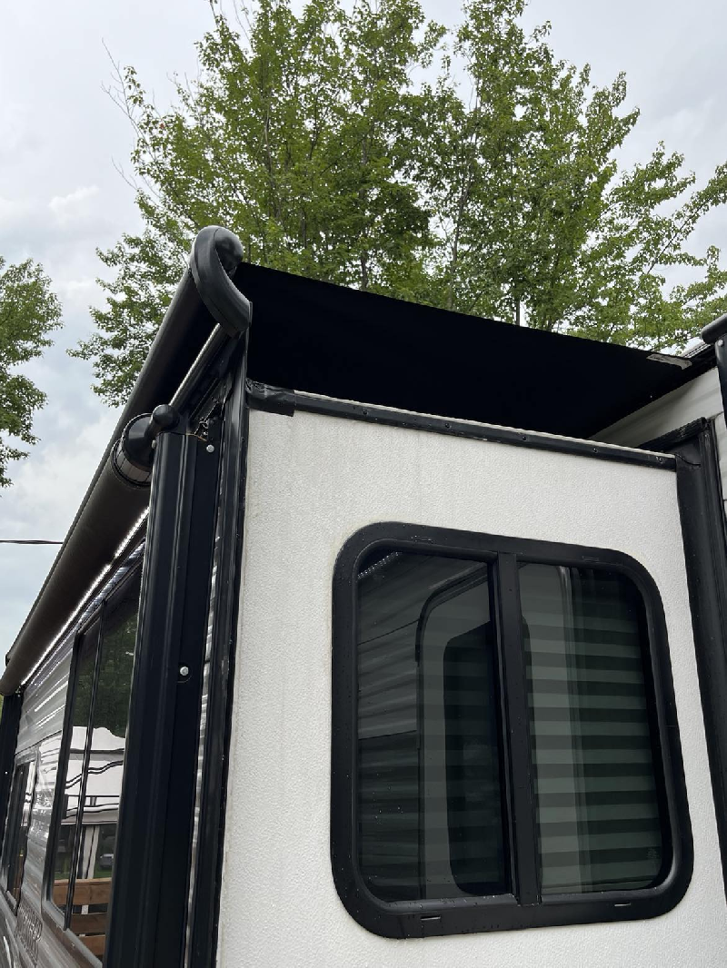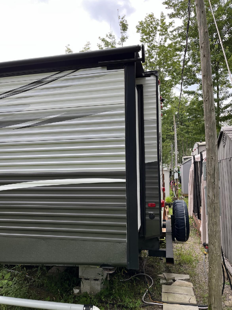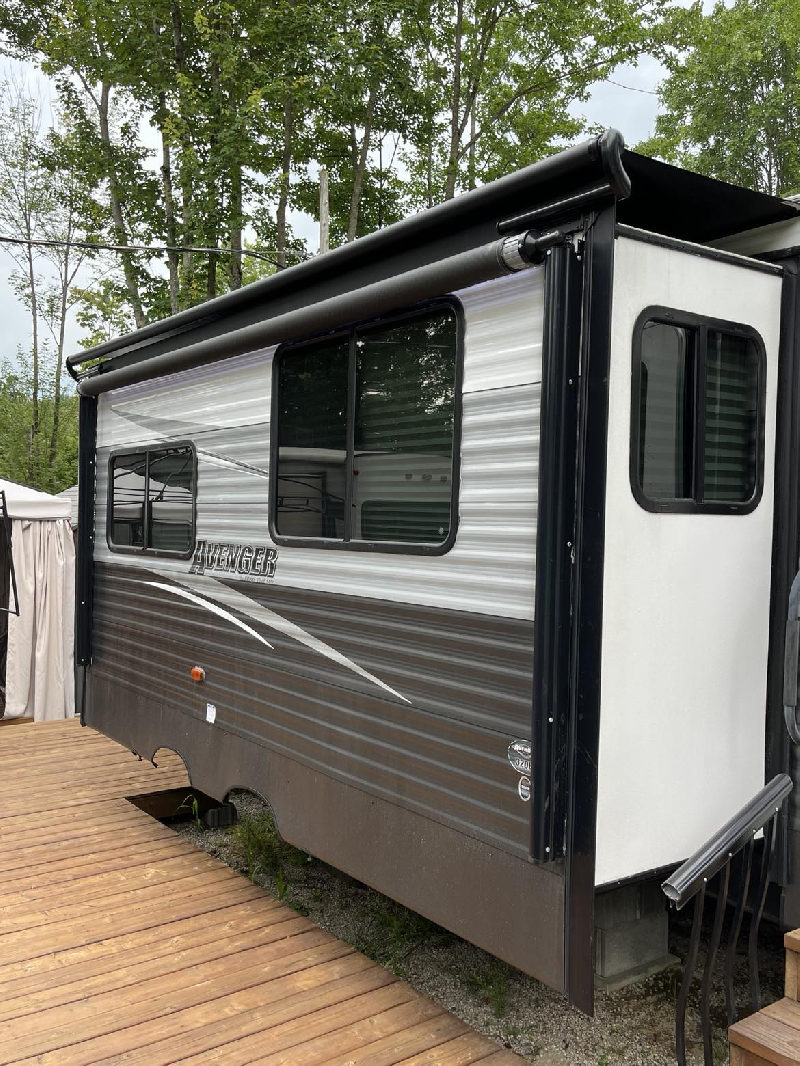 Très belle roulotte pour une famille. Elle est actuellement au camping domaine au grand R à Trois-Rivières sur un des plus beaux et grands terrains. Nous pouvons vendre avec le terrain ou la roulotte seule. Beaucoup d'inclus pv pour info. Nous avions fait installer des auvents sur chaque extension l'an dernier d'une valeur de 3000$. Air climatisé changé l'année dernière. Elle a été inspectée et réparée l'hiver dernier. La banquette dans la cuisinette est du côté de votre terrain donc très agréable. Grande chambre pour enfant avec banquette et beaucoup de rangement. Très grande cuisine extérieure. Chauffe-eau et chauffage électrique ou propane. Une très belle roulotte au goût du jour.