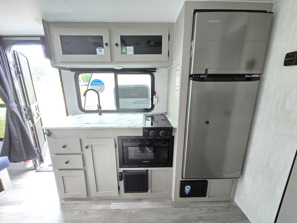 Options : Jantes aluminium, Convertisseur de courant continu, Réservoir de propane, Climatiseur au plafond, Ventilateur au plafond, Vérin stabilisateur, Roue de secours, Douche extérieure, Lucarne, Douche, Toilette, Lit queen-size, Canapé-lit, Prise électrique, Prise cable, Four à convection, Micro-onde, Cuisinière, Auvent, Chauffe-eau à allumage direct NOUVEL ARRIVAGE 2026 ***Maintenant muni de panneaux solaires totalisant 400 watts?? ET frigo de 10.7 pieds cube *** Superbe roulotte idéale pour un couple. En option, lit Murphy (matelas 60"x80") et puit de lumière donnant davantage de ?? à l'habitacle. Elle est équipé d'un chauffe-eau sur demande avec ajustement de la température. Grande douche en coin. Une grande cuisinette extérieure avec frigo, lavabo et grill au propane (quick connect). Construction en cage d'aluminium Toiture à fermes en aluminium laminé collé sous vide avec membrane d'étanchéité Dicor Crossflex Parois latérales et paroi arrière en fibre de verre Azdel double laminée collée sous vide Plancher à ossature en aluminium stratifié Cadre revêtu de poudre anticorrosion Garantie : 1 AN FABRIQUANT