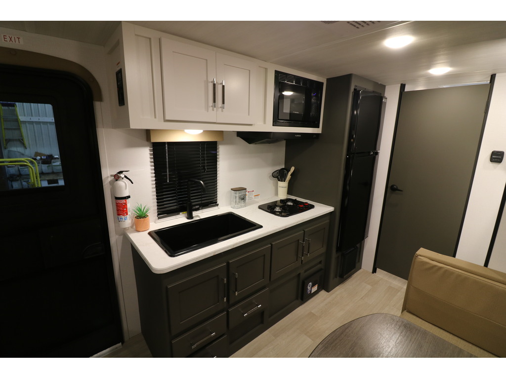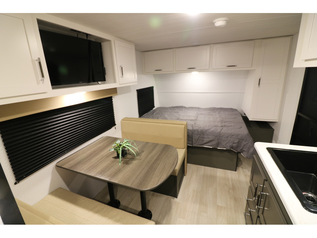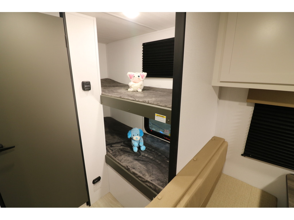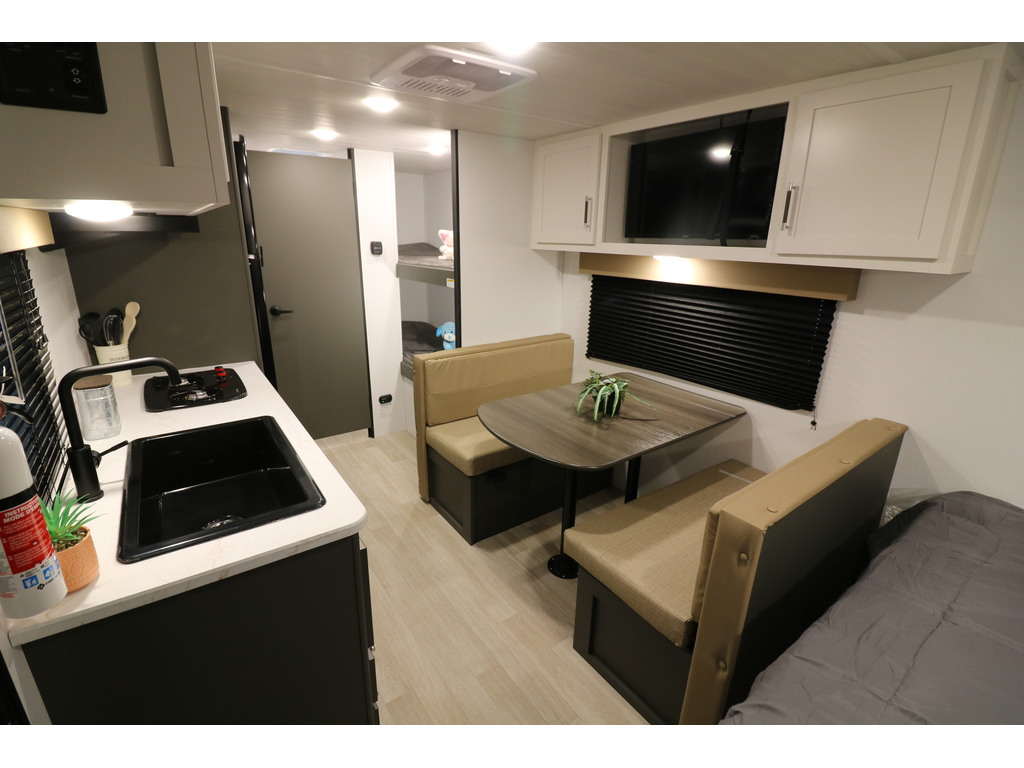 VENDU !!!! Bullet 1700BH 2025. Roulotte parfaite pour la famille de structure en aluminium avec revêtement en fibre de verre. Elle est facile à remorquer puisqu'elle a un poids de seulement 3800 lbs. C'est une superbe roulotte avec des lits superposés pour les enfants. Il y a une belle banquette en cuir avec une grande fenêtre devant qui se transforme en lit supplémentaire pour les invités. Aussi, l'espace cuisine est très fonctionnelle avec un grand évier profond, un micro-onde, des ronds de poêle avec dessus vitré et un grand réfrigérateur avec congélateur à part. Cette roulotte dispose d'énormément de rangement. Elle a une belle salle de bain avec bain douche. Cette roulotte est parfaite pour passer du bon temps à l'extérieur grâce à l'auvent électrique ainsi qu'une petite douchette extérieure. Financement facile sur place. PHOTOS À TITRE INDICATIF