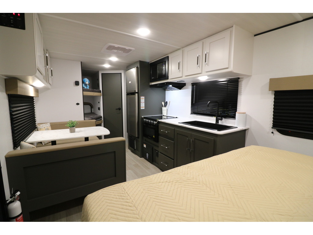NOUVEAU MODÈLE DE ROULOTTE FAMILIALE !!! ELLE A UN POIDS DE 4300 LIVRES INTÉRIEUR: - Cuisine avec grand évier, cuisinière avec dessus vitré ,micro-ondes et grand réfrigérateur - Banquette double qui se transforme en lit - Lits superposés double arrière - Grand lit ( murphy) qui se transforme en sofa - Armoires de couleur pâle qui apportent beaucoup de clarté - Salle de bain arrière toute équipée EXTÉRIEUR: - Auvent électrique avec lumières LED - Coffres de rangement - Jack électrique - Porte cargo arrière pour rangement supplémentaire pendant le transport LARRY AUTOS CARAVANES 530 ROUTE DU PRÉSIDENT-KENNEDY LÉVIS SORTIE 325 SUD 418-838-0333 photos à titre indicatif