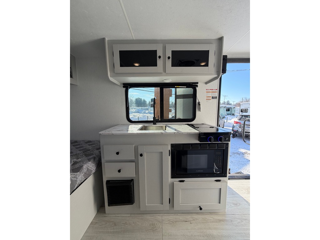 Options : Jantes aluminium, Climatiseur au plafond, Roue de secours, Douche, Toilette, Prise électrique, Micro-onde, Cuisinière, Auvent, Chauffe-eau à allumage direct La Coachmen Remote 14R 2026 est une roulotte ultra légère conçue pour l’aventure, avec une construction durable et moderne chaussé avec des pneus Goodyear Wrangler Structure complète en aluminium et parois en composite Azdel (sans bois), offrant une excellente résistance à l’humidité et une grande longévité. Avec seulement 2 753 lb à vide, elle se remorque facilement. Déjà équipée d’un système solaire 400W, réfrigérateur 12V, pads chauffant pour les tanks et chauffe-eau instantané pour une vraie autonomie. Hauteur intérieure de 6’4’’ pour plus de confort. Compacte, robuste et prête pour le camping hors réseau.