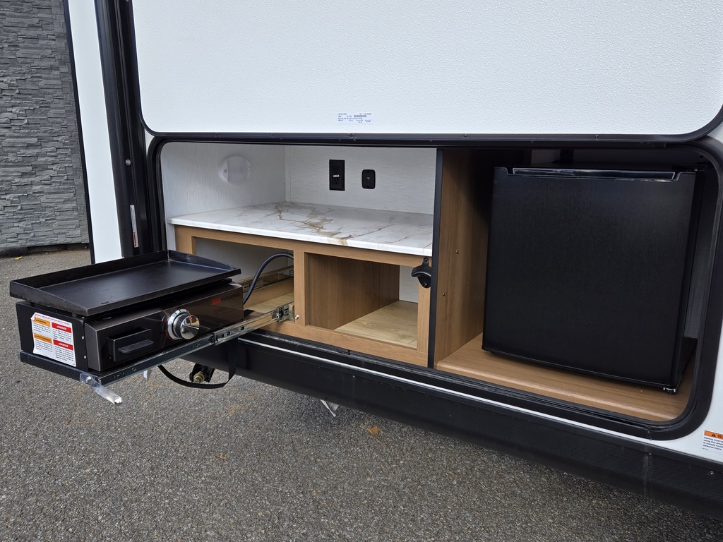Options : Convertisseur de courant continu, Réservoir de propane, Climatiseur au plafond, Ventilateur au plafond, Vérin stabilisateur, Roue de secours, Douche extérieure, Lucarne, Douche, Toilette, Lit queen-size, Lits superposés, Prise électrique, Détecteur LPG/CO2, Téléviseur, Prise cable, Four à convection, Micro-onde, Cuisinière, Auvent, Chauffe-eau à allumage direct NOUVEAU MODÈLE 2026, Nouveau design, nouvelle couleur intérieure. Roulotte familiale avec murphy bed et lits doubles superposés. Comptoir extérieur avec télévision, cuisinette extérieure avec grill plancha et mini frigo. Frigo 10 pieds cubes ??. Elle est muni d'un puit de lumière au dessus du lit donnant une belle luminosité et une circulation d'air parfaite. Inclus: chauffe-eau sur demande, air climatisé, chauffage propane , panneau solaire 400 watts avec convertisseur de courant de 30 AMP, douche extérieure. FINANCEMENT DISPONIBLE SUR PLACE Construction en cage d'aluminium Toiture à fermes en aluminium laminé collé sous vide avec membrane d'étanchéité Dicor Crossflex Parois latérales et paroi arrière en fibre de verre Azdel double laminée collée sous vide Plancher à ossature en aluminium stratifié Cadre revêtu de poudre anticorrosion Garantie : 1 AN FABRIQUANT possibilité d'achat d'une garantie prolongé