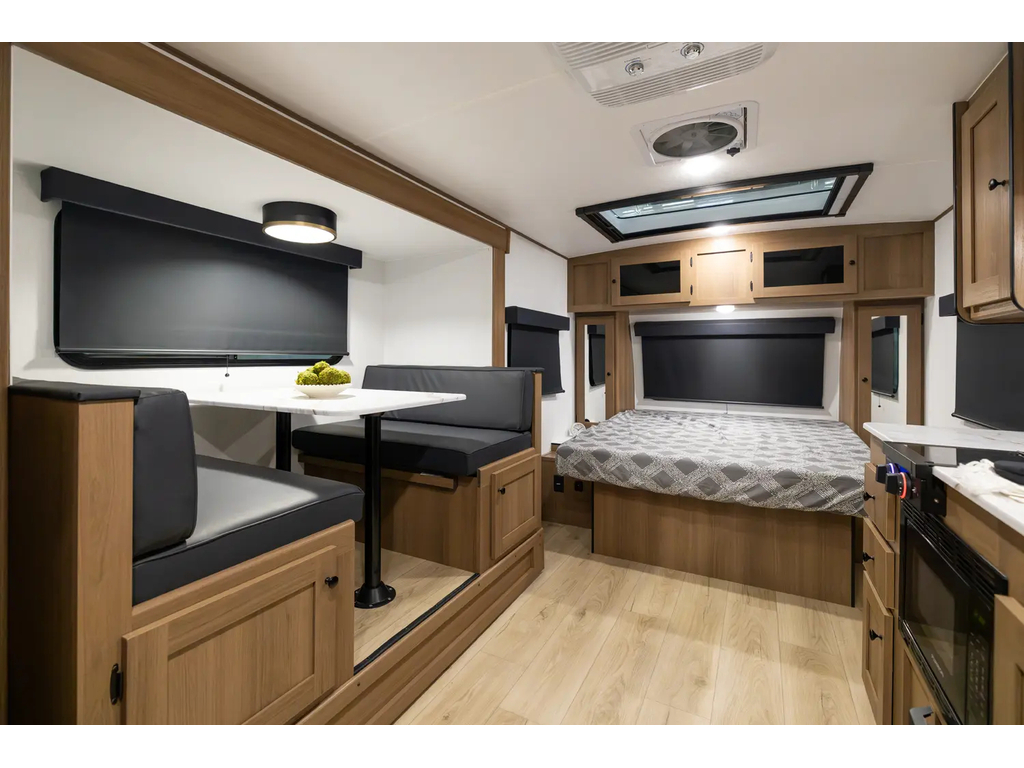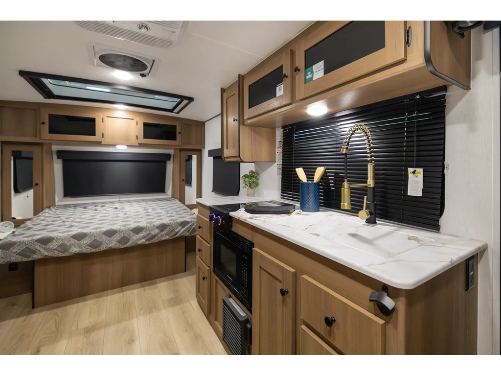 Options : Convertisseur de courant continu, Réservoir de propane, Climatiseur au plafond, Ventilateur au plafond, Vérin stabilisateur, Roue de secours, Douche extérieure, Douche, Toilette, Lit queen-size, Prise électrique, Détecteur LPG/CO2, Prise cable, Micro-onde, Cuisinière, Auvent, Chauffe-eau à allumage direct N.B: CE MODÈLE N'A PAS L'OPTION PUIT DE LUMIÈRE COMME SUR LES PHOTOS Superbe roulotte pour couple, lit QUEEN , Réfrigérateur 10 pi³ 12 V, Plaque de cuisson à deux brûleurs encastrée et étroite, Friteuse à air chaud Micro-ondes, Évier à une cuve en acier inoxydable avec couvercle, Climatisation de 15 000 BTU, Centre d'alimentation 55 A, Système solaire de 400 watts avec contrôleur de charge de 30 ampères. Prises 12V (passage et cuisine extérieure), Chargeurs USB/USB-C, Préparation pour onduleur, Chauffe-eau instantané sans réservoir (48 000 BTU), Douche extérieure chaude/froide, Alarme de fuite de GPL, Extincteur, Détecteur de fumée Détecteur de monoxyde de carbone, Éclairage intérieur LED, Construction en cage d'aluminium, Toiture à fermes en aluminium laminé collé sous vide avec membrane d'étanchéité Dicor Crossflex, Parois latérales et paroi arrière en fibre de verre Azdel double laminée collée sous vide, Plancher à ossature en aluminium stratifié. N.B:CE MODÈLE NE POSSÈDE PAS DE PUIT DE LUMIÈRE COMME SUR LES PHOTOS, MAIS IL EST POSSIBLE DE L'AVOIR SUR UN AUTRE MODÈLE. Garantie : 1 AN FABRIQUANT
