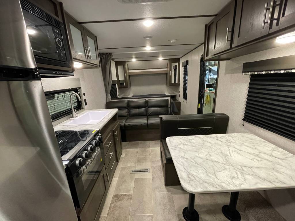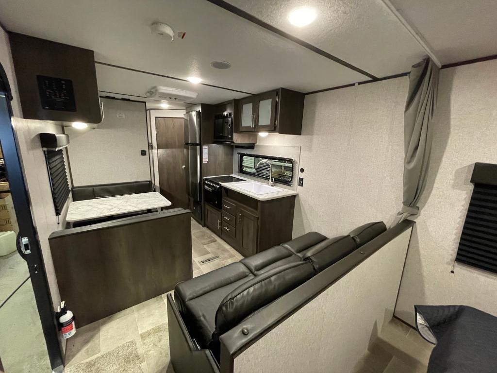 COLEMAN 274BH 2022 Coleman 274BH Poids 4836 livres Peut accueillir 10 personnes au coucher. L'unité possède des lits superposés, une dinette transformable en lit double, un canapé-lit en cuir ainsi qu'un grand lit Queen. La cuisine est petite mais fonctionnelle. On y retrouve une cuisinière à 3 brûleurs, un fourneau, une hotte avec ventilation et éclairage, un réfrigérateur de 10' cube ainsi qu'on four micro-onde. Pour ce qui est de la salle de bain, vous avez à votre disposition: une toilette, une douche ainsi qu'un meuble lavabo avec miroir. La Coleman est équipée d'un air climatisé de 8 000 BTU, d'une fournaise, de prises électriques et d'un radio AM-FM Bluetooth. L'extérieur est en fini aluminium. Cette roulotte possède un auvent de 14', un réservoir d'eau douce de 52 gal, d'eaux usés de 84 gal et deux réservoirs de propanes de 40 lbs LOCATION COMPLÉTE POUR L`ÉTÉ *** Prendre note que les photos et les options décrites peuvent différées *** Toute l'équipe de Centre du VR est fière de vous présenter le plus vaste inventaire de véhicules récréatifs neufs et d'occasions à vendre au Québec. Vous y trouverez notamment les marques Columbus, Rockwood, Kodiak, Coleman, Cruiser RV, Flagstaff, E-Pro, Springdale, Sunset Trail, Cougar, Chaparral, Bontrager Outdoors, motorisés Axis,Hurricane, Outlaw, Coachmen Cross Trail, Prism, Echelon,Fleetwood, Four winds, Beyon, Nova, Patriot et Embassy Dolphin. Remorques N&N, Apogée et Armorteck sont aussi disponibles. En inventaire pour vous, la série de génératrices Ducar. Vous avez un coup de coeur ? Envoyez-nous une demande d'information,financement sur place. N'oubliez pas également que rien ne vaut une visite du modèle qui vous intéresse pour vous aider à prendre une décision éclairée. Passez donc nous voir afin de jeter un coup d'oeil plus détaillé à nos caravanes et caravanes à sellettes neuves.
