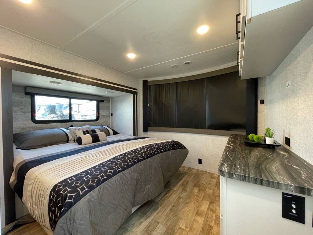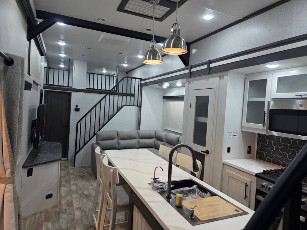 HAMPTON 390PVL 2025 Longueur 42,92 pi (515 po) Largeur 8,25 pi (99 po) Hauteur 13,5 pi (162 po) Hauteur intérieure 8 pi (96 po) Poids Poids sec 12 157 livres Capacité de charge utile 2 843 livres PNBV 15 000 livres Poids d'attelage 1 632 livres Réservoirs de rétention Nombre de réservoirs d'eau douce 1 Capacité totale du réservoir d'eau douce 54,0 gal. Nombre de réservoirs de rétention d'eaux grises 2 Capacité totale du réservoir d'eaux grises 80,0 gal. Nombre de réservoirs de rétention des eaux noires 1 Capacité totale du réservoir d'eaux noires 40,0 gal. Réservoir(s) de propane Nombre de réservoirs de propane 2 Capacité totale du réservoir de propane 14,2 gal. Capacité totale du réservoir de propane 60 livres. Longueur de l'auvent 20 pi (240 po) électrique. Configuration de la table de cuisine Comptoir / Îlot Emplacement de la cuisine Centre. Nombre maximal de sommeils 9. Centre du VR : Votre expert en véhicules récréatifs au Québec Découvrez le plus vaste inventaire de VR neufs et d'occasion au meilleur prix. Que vous cherchiez une roulotte, une caravane à sellette (fifth wheel), une caravane-portée, un motorisé ou une remorque, notre équipe vous propose les plus grandes marques : Roulottes et Fifth Wheels : Rockwood, Flagstaff, Cougar, Springdale, Sunset Trail, Chaparral, Columbus, Impression, Kodiak, Coleman, E-Pro, Cruiser RV. Motorisés (Classe A, B, C) : Axis, Hurricane, Fleetwood, Four Winds, Coachmen Cross Trail, Prism, Echelon, Outlaw, Beyond, Nova. Remorques et Équipements : NN, Apogée, Armorteck et génératrices Ducar ou Cummins. Bien plus que de la vente : Un service complet Département de pièces et boutique : Un inventaire massif de pièces de remplacement et d'accessoires de camping pour améliorer votre confort. Service et réparation : Un centre de service spécialisé pour l'entretien et la réparation de vos unités, assuré par des techniciens experts. Financement : Profitez de nos solutions de financement avantageuses directement sur place. Un modèle vous intéresse ou vous avez besoin d'un entretien ? Contactez-nous pour une demande d'information ou passez nous voir en succursale pour une visite ! Note : Les photos et options peuvent différer de la réalité.