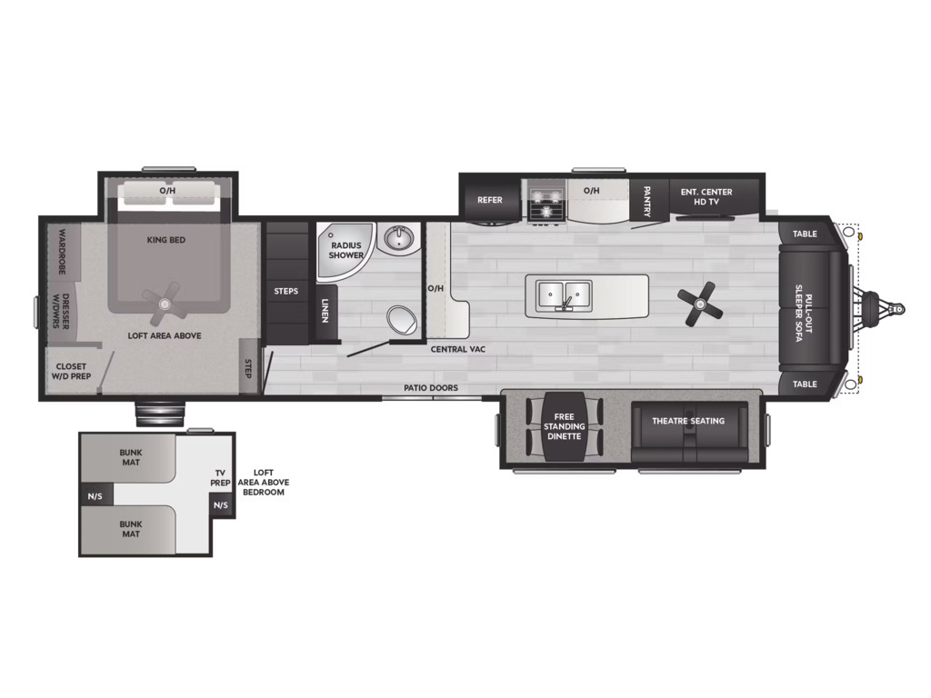 Options : Douche, Toilette, Lit arrière, Téléviseur, Micro-onde, Four Cette magnifique roulotte de parc allie modernité et confort. Hauts plafonds de 8 pieds : sensation d'ouverture et de luminosité Chambre arrière fermée avec lit king Loft : parfait pour les familles et les invités Salon et cuisine combinés : espace spacieux et conviviale Grandes fenestrations et portes-patio : accès facile, vues magnifiques et air frais Beaucoup de rangement Vous vous sentirez chez vous dans cette Residence exceptionnelle! Intéressé(e) ? Venez voir ! Rien de mieux qu'une visite en personne pour solidifier votre opinion. Chez Roulottes Turmel, notre équipe motivée et dévouée saura vous rassurer et vous aider dans vos recherches. Notre but est d'offrir le meilleur service-conseil relatif aux véhicules récréatifs ainsi qu'aux produits de qualité s'y rattachant. Nous saurons trouver ce qui vous conviendra pour rendre vos futures expériences de voyage et de camping inoubliables. *L'unité en stock pourrait légèrement différer des images présentées.