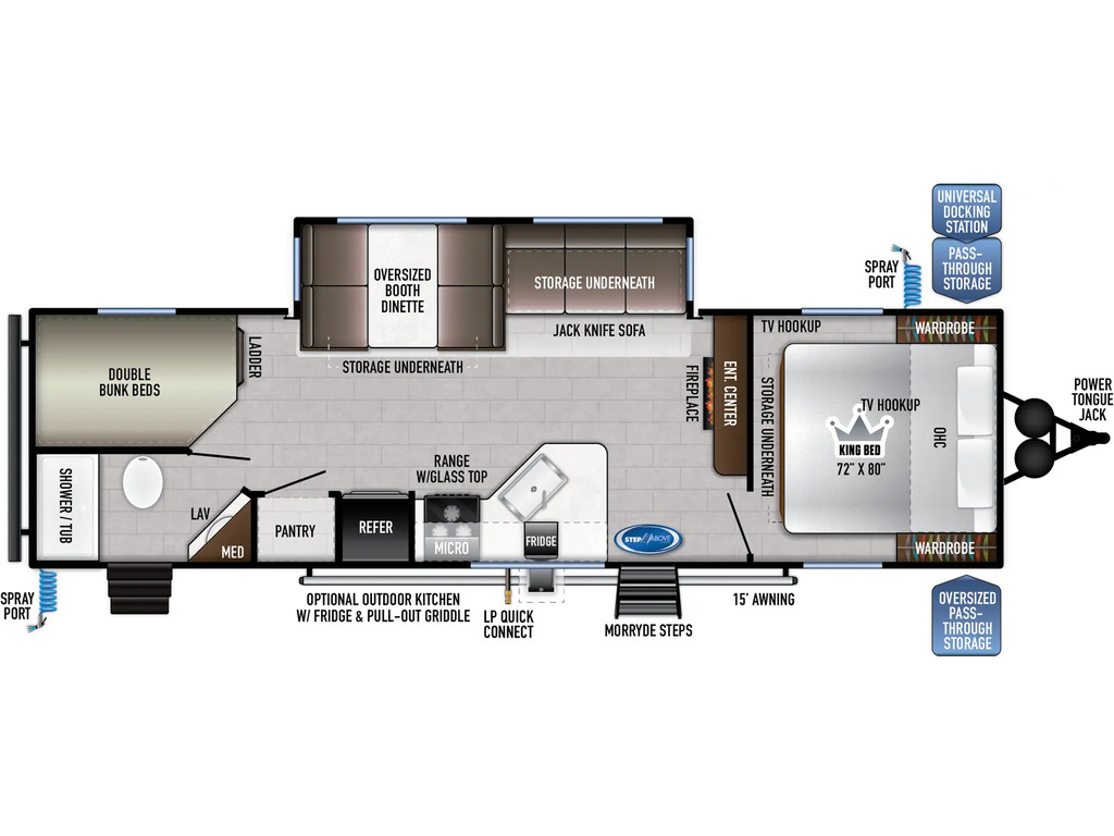 Options : Douche, Toilette, Lit double, Lits superposés, Lit arrière, Canapé-lit, Micro-onde, Cuisinière, Four Magnifique roulotte spacieuse et lumineuse Peut accueillir jusqu'à 10 personnes Chambre fermée avec lit king à l'avant 2 lits doubles superposés à l'arrière Dinette pouvant être convertie en lit supplémentaire Canapé-lit Salle de bain complète Espace de vie convivial Grande fenestration Cuisine équipée 2 portes donnent accès à l'intérieur dont une directement dans la salle de bain Intéressé(e) ? Venez voir ! Rien de mieux qu'une visite en personne pour solidifier votre opinion. Chez Roulottes Turmel, notre équipe motivée et dévouée saura vous rassurer et vous aider dans vos recherches. Notre but est d'offrir le meilleur service-conseil relatif aux véhicules récréatifs ainsi qu'aux produits de qualité s'y rattachant. Nous saurons trouver ce qui vous conviendra pour rendre vos futures expériences de voyage et de camping inoubliables. *L'unité en stock pourrait légèrement différer des images présentées.
