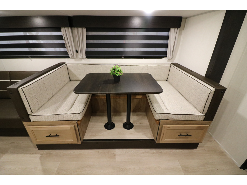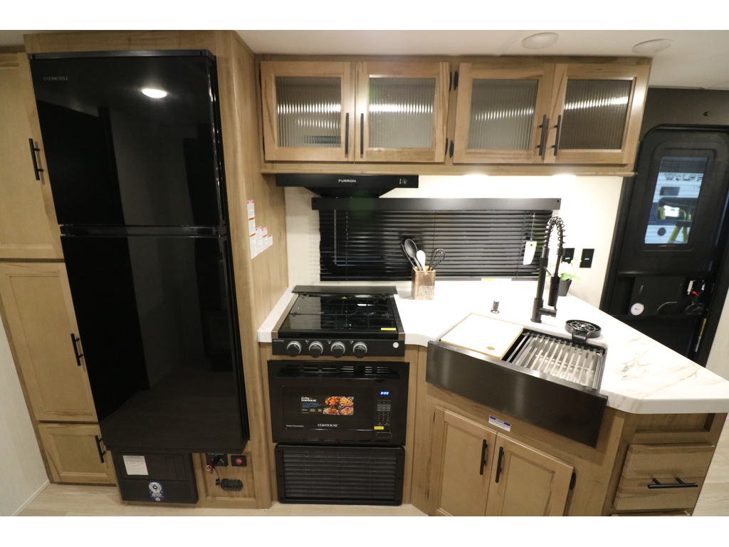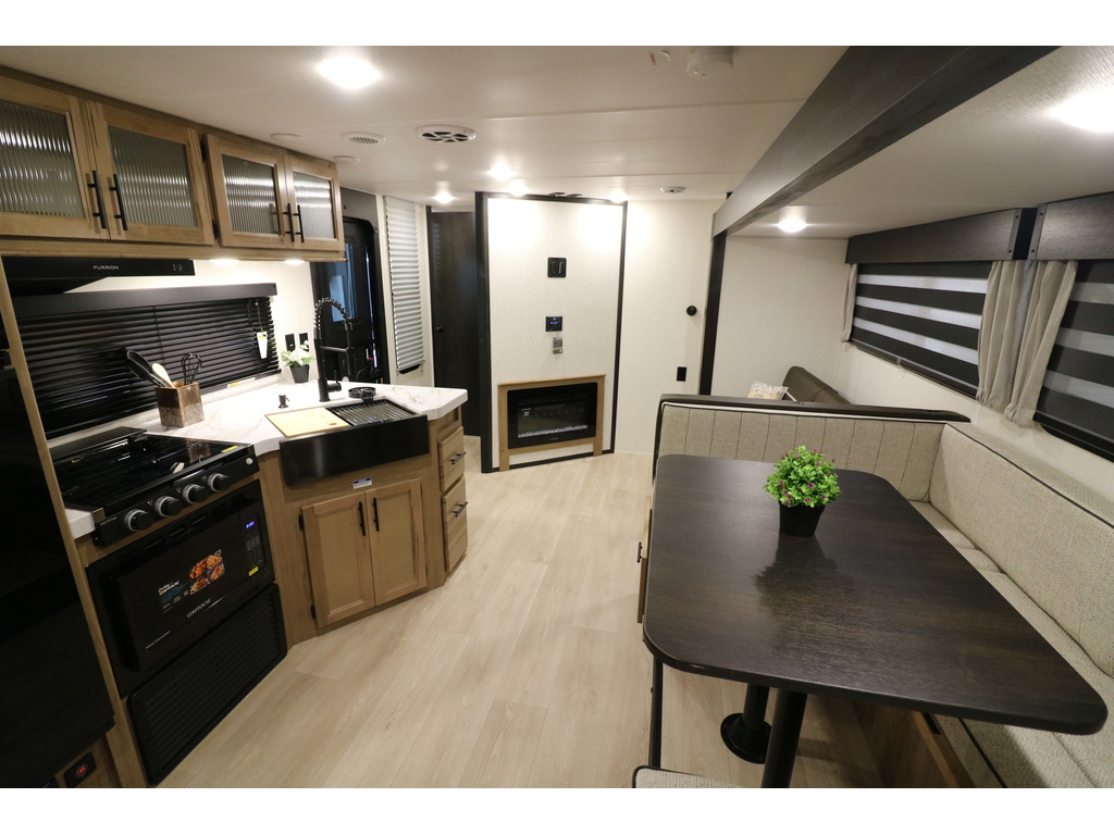 GREY WOLF 29NM 2026 Roulotte familiale pouvant accueillir jusqu'à 12 personnes. Elle a un poids de 6800 livres. INTÉRIEUR: - Banquette en U qui se transforme en lit - Réfrigérateur électrique 12V - Cuisinière avec dessus vitré - Micro-ondes air fryer et convection - Sofa lit - Foyer électrique - Chambre arrière pour enfants avec table et plusieurs places pour dormir - Salle de bain toute équipée - Chambre avant munie d'une porte extérieure indépendante, d'un lit queen et beaucoup de rangement EXTÉRIEUR: - Marches robustes - Porte cargo - Cuisine extérieure - Coffres de rangement - Jack électrique - Douchette extérieure - Auvent électrique avec lumières DEL - Rack arrière photos à titre indicatif