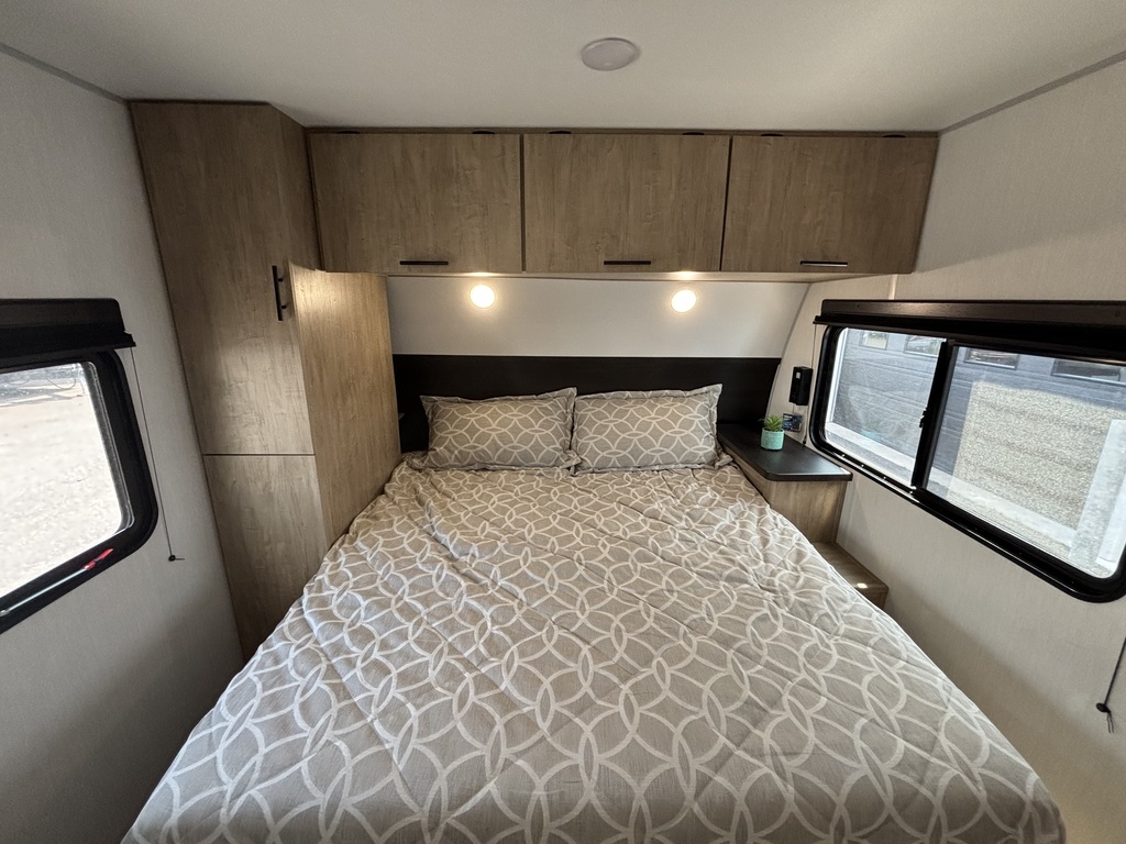 Viens tout juste d'Arriver !!! Grey Wolf 26DJSE 2026 Roulotte idéale pour la famille. Elle est complètement équipée avec un poids de seulement 5100 lbs. Elle a un lit queen pour les parents avec une armoire de chaque côté du lit et à l'arrière, pour les enfants, des lits superposés double/double avec chacun une fenêtre. Cette roulotte a un divan 3 places se transformant en lit ainsi qu'une grande banquette qui seront très pratique pour toute la famille. La cuisine a beaucoup de commodité tel qu'un grand évier, une cuisinière avec un dessus vitré et un réfrigérateur. Cette roulotte est parfaite pour passer du bon temps à l'extérieur grâce à l'auvent électrique et les haut-parleurs extérieurs. Elle est munie de beaucoup de rangement extérieur sans oublier des marches ultra-robustes pour une meilleure stabilité. Le support arrière peut être pratique pour le transport des vélos ou autres articles (jeux pour les enfants, bois pour les feux). Financement facile sur place.