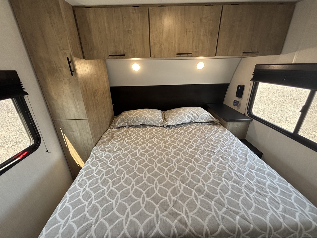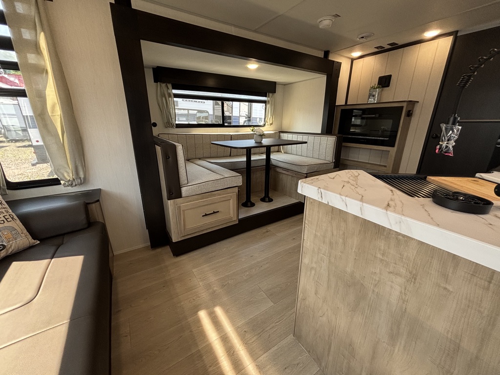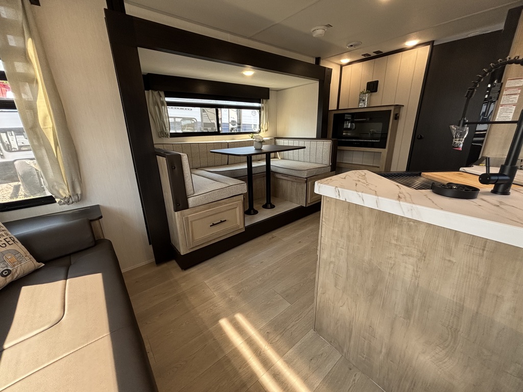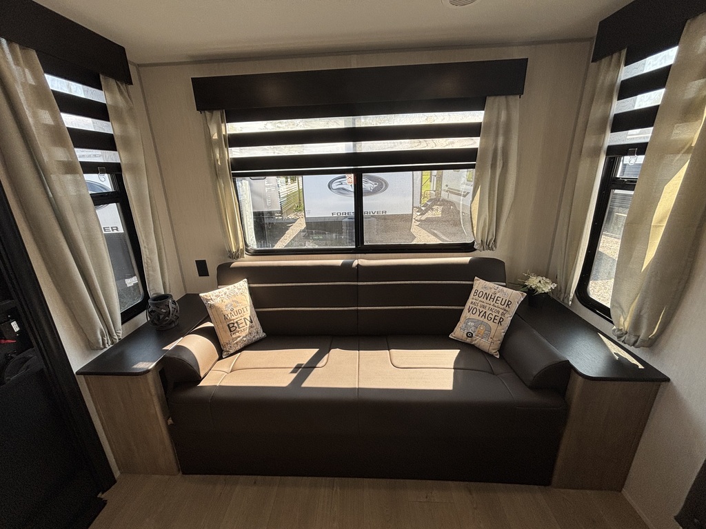 EN INVENTAIRE Grey Wolf 23MK 2026. Roulotte idéale pour un couple. Elle pèse 5000lbs. La chambre avant fermée comporte un très grand lit et un garde-robe de chaque côté du lit. La cuisine a un grand évier en acier inoxydable et d'une cuisinière 3 ronds et d'un micro-ondes convection-air fryer ainsi que d'un grand réfrigérateur. Il y a une banquette en U qui se transforme en grand lit supplémentaire en plus d'avoir des tiroirs très profond qui donne énormément de rangement. Cette roulotte a un contrôle électronique de la température ainsi qu'un beau foyer électrique. Vous serez enchanté par le confort du divan 3 places qui se transforme en lit ainsi qu'une grande fenestration. La salle de bain a une douche en coin et beaucoup de rangement. Elle est très bien équipée pour profiter de l'extérieur avec sa petite cuisinette extérieure munie d'un petit frigo et une machine à glace. Aussi elle a un auvent électrique et ses haut-parleurs extérieurs. Elle est dotée de marches ultra-robustes et de stabilisateurs. Il y a beaucoup de rangement extérieur avec ses coffres équipés de loquets aimantés mains-libres Financement facile sur place. photos à titre indicatif