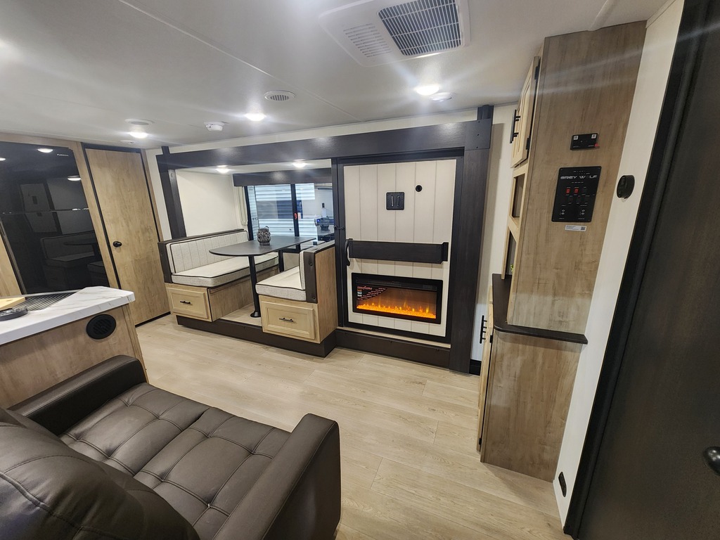 Fraichement arrivée!! GREY WOLF 26SS 2026 Parfaite pour un couple! Elle peut coucher jusqu'à 4 personnes. Elle pèse 6000 lbs. INTÉRIEUR: - Cuisine complète avec grand réfrigérateur - Dinette en U qui se transforme en lit supplémentaire - Fauteuil inclinable - Rangement caché derrière le foyer - Salle de bain complète - Beaucoup de rangement EXTÉRIEUR: - Auvent électrique avec lumières LED - Cuisinette extérieure - Vérins avant et stabilisateurs électriques - Coffre de rangement VENEZ LA VOIR!!!
