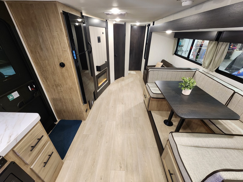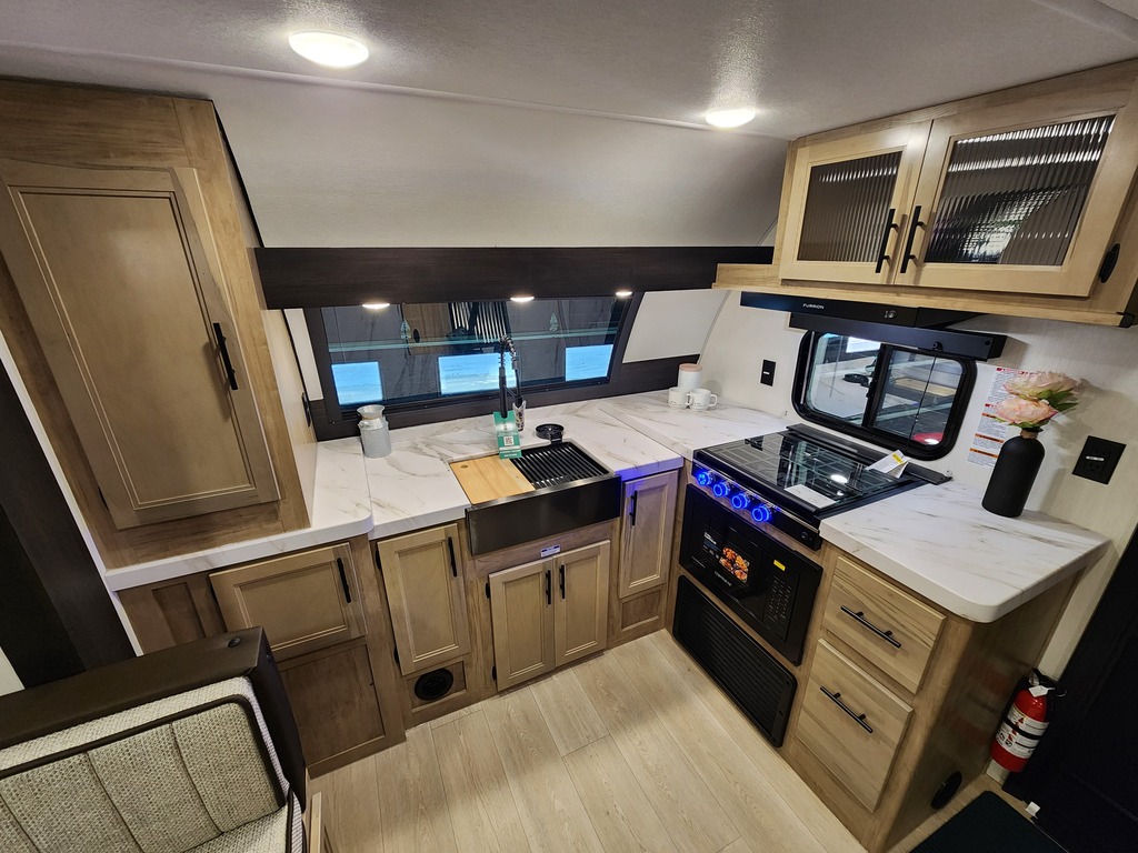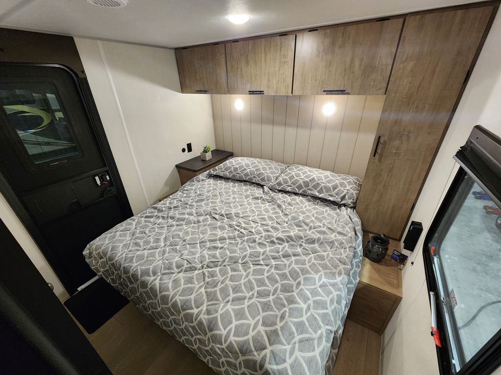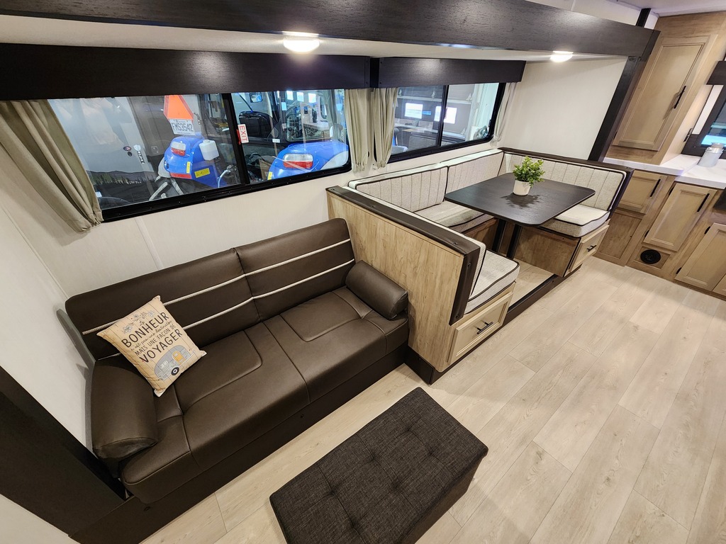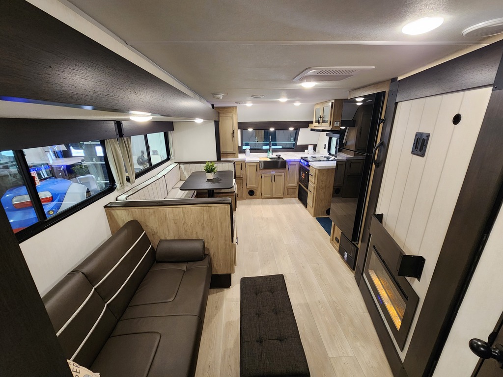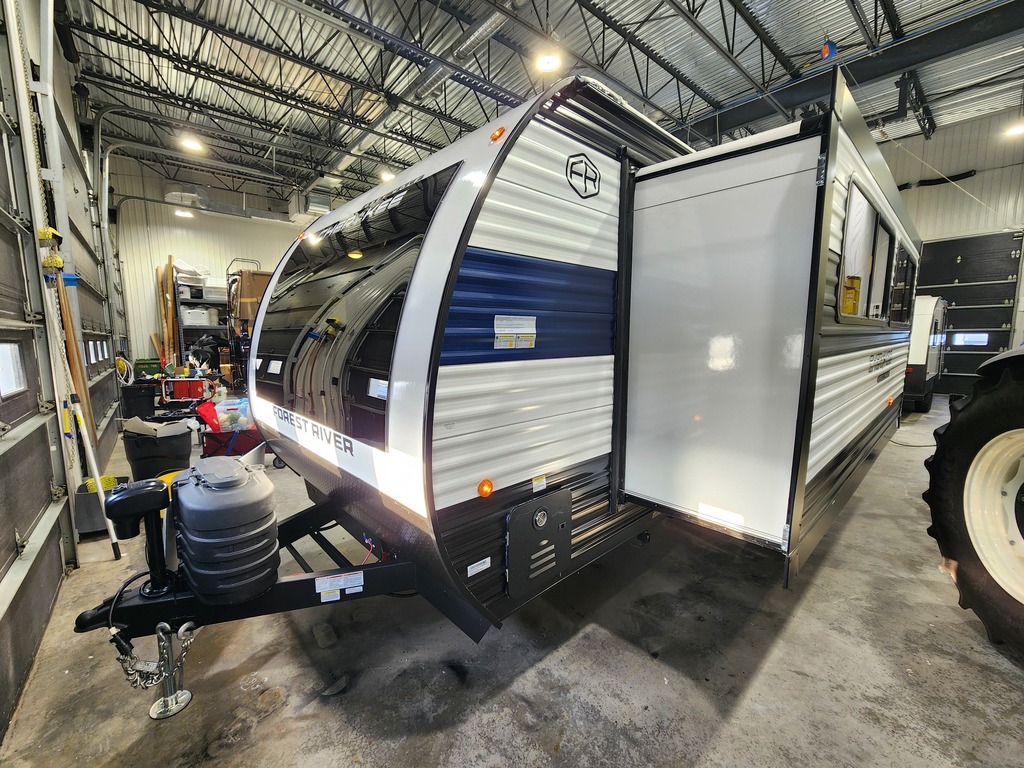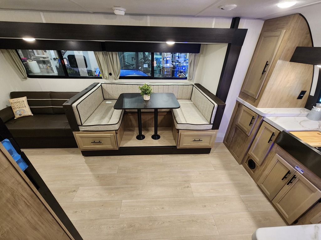 GREY WOLF 27GH 2026 ROULOTTE POUR COUPLE AVEC CHAMBRE ARRIÈRE POIDS DE 6400 LIVRES INTÉRIEUR: - Cuisine avant fenestrée avec grand évier, cuisinière avec dessus vitré, micro-ondes convection air fryer et grand réfrigérateur - Banquette et sofa se transforment en lits supplémentaires - Foyer électrique - Chambre arrière avec grand lit - Salle de bain avec douche en coin avec vanité. De plus elle possède une petite pharmacie derrière le miroir - Très jolie finition intérieure EXTÉRIEUR: -Auvent électrique avec lumières LED - Cuisinette extérieure - Marches ultra robustes à la porte principale - Vérins avant et stabilisateurs électriques - Grand coffre de rangement *Photos à titre indicatif*