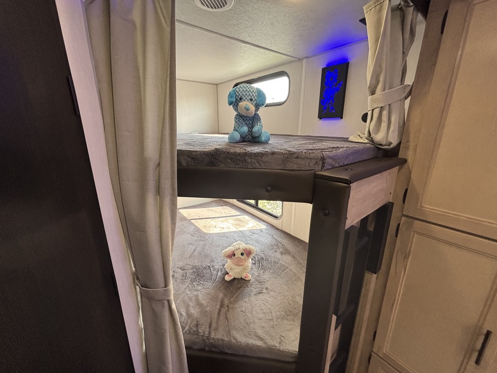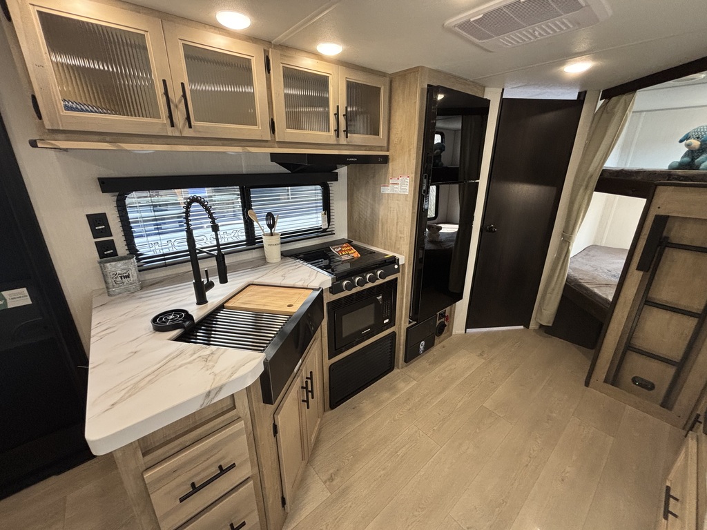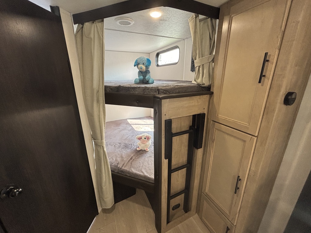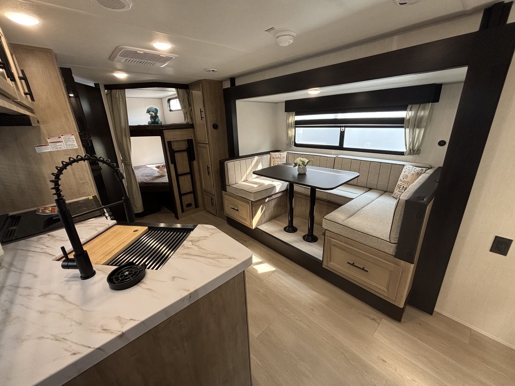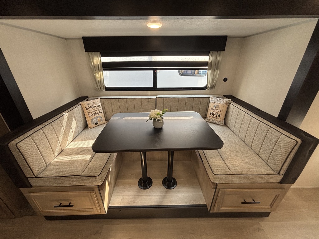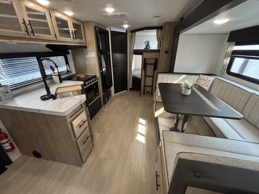 vendu !! GREY WOLF 23DBH 2026 Roulotte familiale avec un poids d'environ 5800 livres INTÉRIEUR: - Cuisine avec évier en stainless, cuisinière avec dessus vitré, micro-ondes et grand réfrigérateur - Grande banquette en U qui se transforme en lit - Foyer électrique - Lits superposés doubles à l'arrière avec échelle - Chambre des maîtres avant avec rangement tout autour - Salle de bain arrière toute équipée avec sortie indépendante EXTÉRIEUR: - Auvent électrique - Marches ultra robustes - Jack électrique - Petit frigo extérieur - Coffres de rangement *Photos à titre indicatif*
