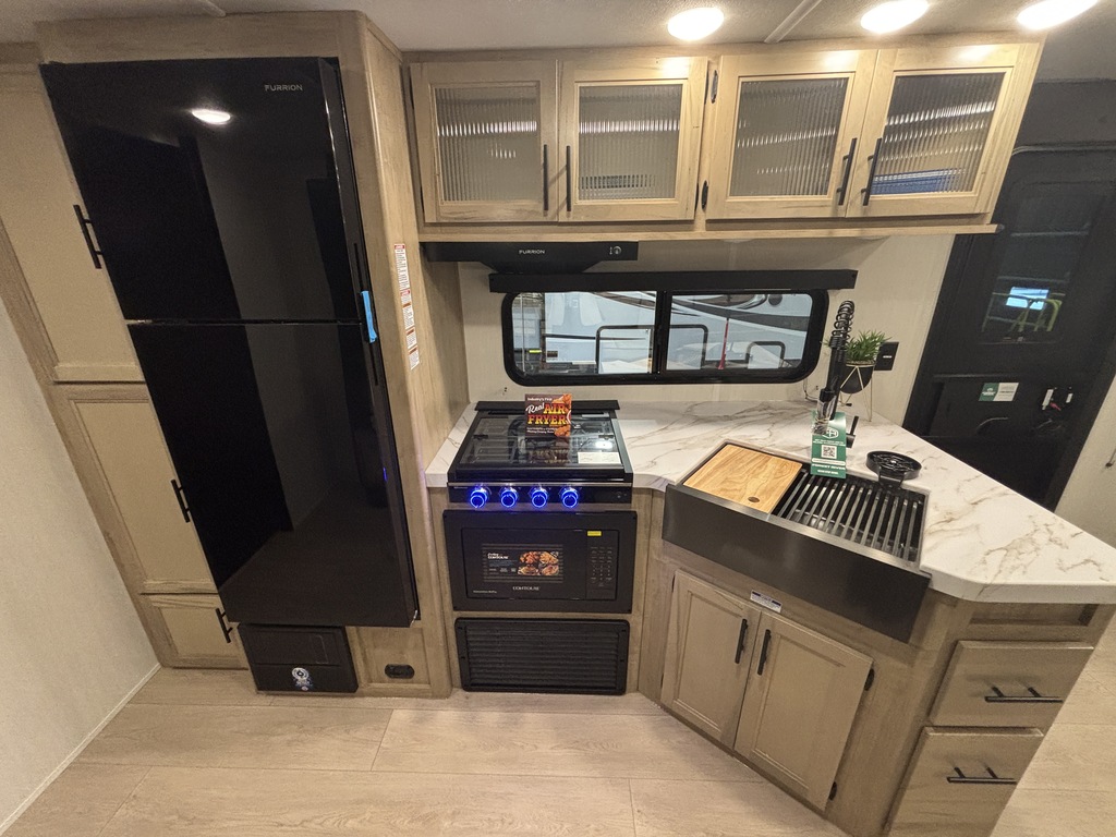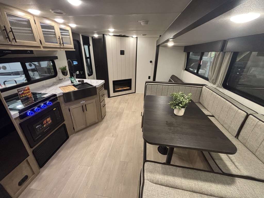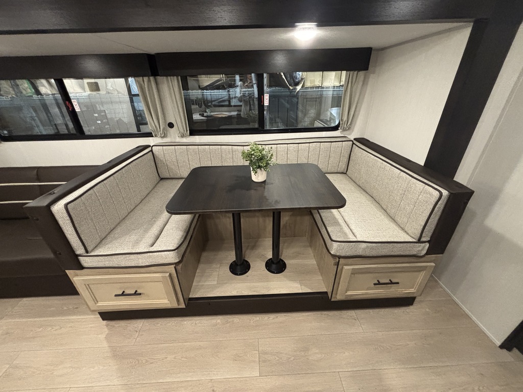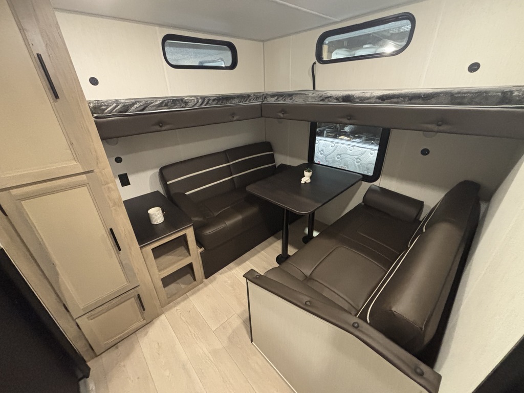 GREY WOLF 29NM 2026 Roulotte familiale pouvant accueillir jusqu'à 12 personnes. Elle a un poids de 6800 livres. INTÉRIEUR: - Banquette en U qui se transforme en lit - Réfrigérateur électrique 12V - Cuisinière avec dessus vitré - Micro-ondes air fryer et convection - Sofa lit - Foyer électrique - Chambre arrière pour enfants avec table et plusieurs places pour dormir - Salle de bain toute équipée - Chambre avant munie d'une porte extérieure indépendante, d'un lit queen et beaucoup de rangement EXTÉRIEUR: - Marches robustes - Porte cargo - Cuisine extérieure - Coffres de rangement - Jack électrique - Douchette extérieure - Auvent électrique avec lumières DEL - Rack arrière photos à titre indicatif