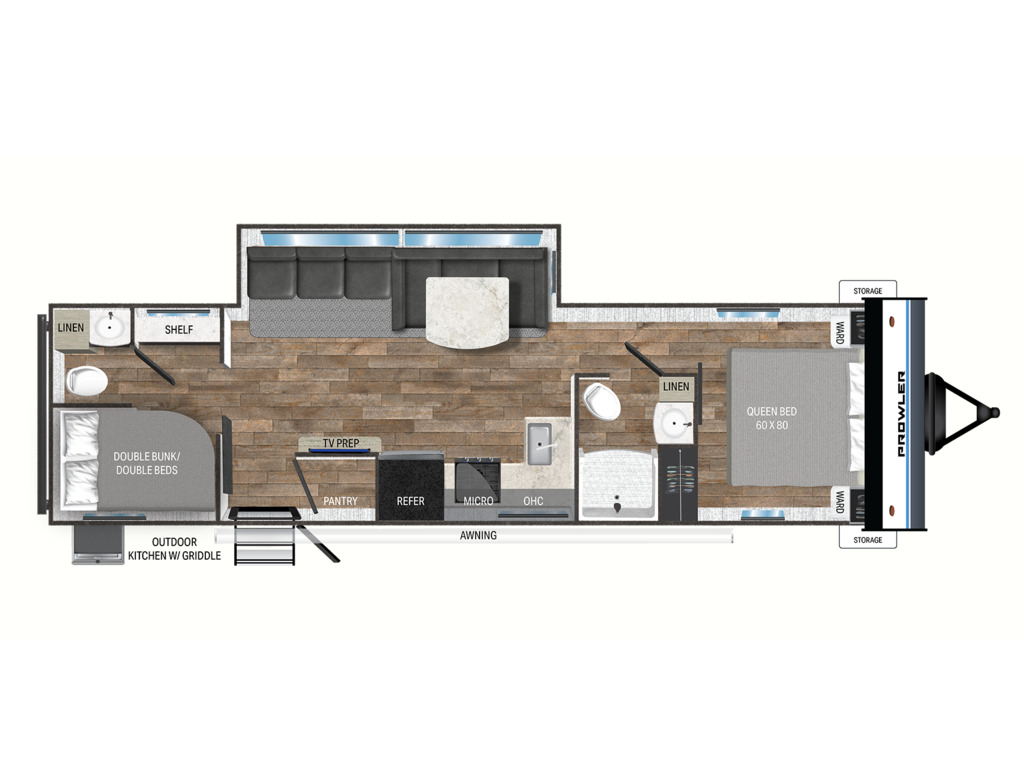 Options : Douche, Toilette, Lit queen-size, Lit double, Lits superposés, Lit arrière, Canapé-lit, Micro-onde, Four Roulotte spacieuse et moderne Espace de vie convivial Peut accueillir jusqu'à 10 personnes 2 chambres : Une à l'arrière avec 2 lits doubles superposés Une à l'avant avec lit queen Une salle de bain complète Une deuxième toilette avec lavabo dans la chambre arrière Beaucoup de rangement Ces caractéristiques font de la Prowler 315BH un choix idéal pour ceux qui cherchent le confort et la fonctionnalité d'une maison sur roues. Parfaite pour les aventures en famille ou entre amis. Intéressé(e) ? Venez voir ! Rien de mieux qu'une visite en personne pour solidifier votre opinion. Chez Roulottes Turmel, notre équipe motivée et dévouée saura vous rassurer et vous aider dans vos recherches. Notre but est d'offrir le meilleur service-conseil relatif aux véhicules récréatifs ainsi qu'aux produits de qualité s'y rattachant. Nous saurons trouver ce qui vous conviendra pour rendre vos futures expériences de voyage et de camping inoubliables. *L'unité en stock pourrait légèrement différer des images présentées.