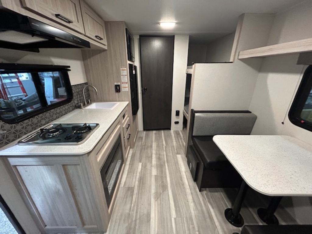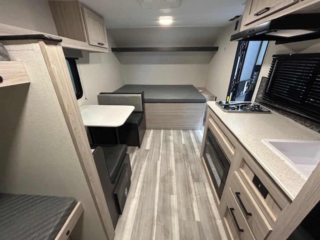 Options : Réservoir de propane, Vérin stabilisateur, Douche, Toilette, Lits superposés, Prise électrique, Détecteur LPG/CO2, Cuisinière, Auvent, Chauffe-eau