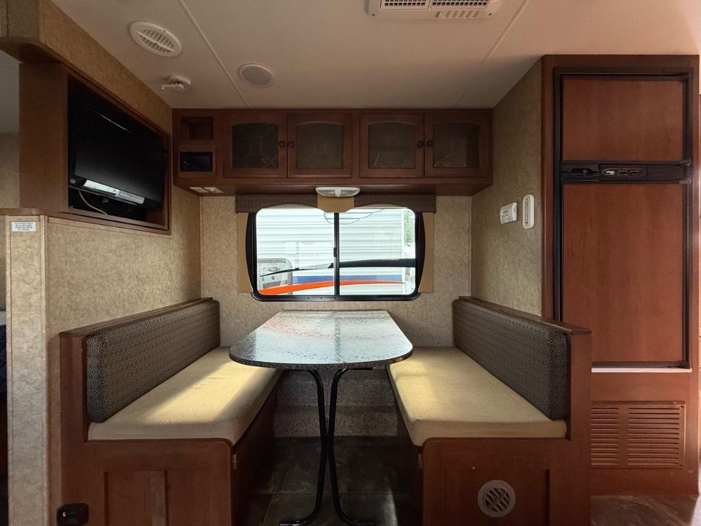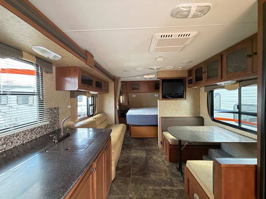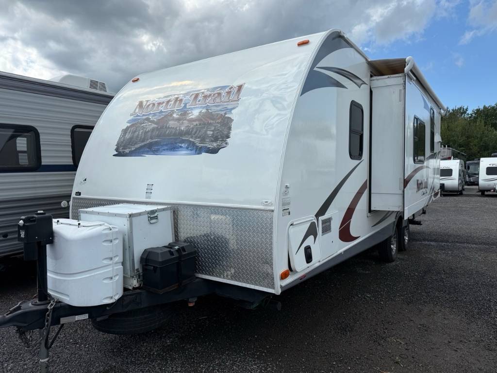 Heartland BRICOLEUR Trail Lite 24RBS 2013Roulotte – Heartland 2013 – North Trail 24RBS - Le Heartland North Trail 24RBS (2013) est une roulotte compacte et bien équipée, idéale pour les couples ou petites familles. Dimensions et capacités : • Longueur : 28.7 pieds • Poids à sec : 4 595 lbs • Réservoir d’eau douce : 36 gal • Réservoirs d’eaux usées : 74 gal • Couchages : Jusqu’à 6 personnes 5 caractéristiques principales : • Longueur de 28,7 pieds et poids à vide de 4 595 lb. • Capacité de 6 personnes avec lit queen et deux lits convertibles. • Cuisine centrale avec réfrigérateur à double alimentation, four à 3 foyers, micro-ondes et évier avec couvercle. • Salle de bain arrière avec douche en plastique/vidéo, toilette en porcelaine et lavabo. • À l’extérieur, un grand auvent électrique et des stabilisateurs manuels assurent confort et stabilité. En résumé, cette roulotte combine compacité, confort et équipements essentiels pour des escapades réussies. *** Prendre note que les photos et les options décrites peuvent différées *** Toute l'équipe de Centre du VR est fière de vous présenter le plus vaste inventaire de véhicules récréatifs neufs et d'occasions à vendre au Québec. Vous y trouverez notamment les marques Columbus, Rockwood, Impression, Kodiak, Coleman, Cruiser RV, Flagstaff, E-Pro, Springdale, Sunset Trail, Cougar, Chaparral, Bontrager Outdoors, motorisés Axis, Hurricane, Outlaw, Coachmen Cross Trail, Prism, Echelon, Fleetwood, Four winds, Compass, Beyond, Nova et Pixel. Remorques N&N, Apogée et Armorteck sont aussi disponibles. En inventaire pour vous, la série de génératrices Ducar. Vous avez un coup de coeur ? Envoyez-nous une demande d'information. Financement sur place. N'oubliez pas également que rien ne vaut une visite du modèle qui vous intéresse pour vous aider à prendre une décision éclairée. Passez donc nous voir afin de jeter un coup d'oeil plus détaillé à nos caravanes et caravanes à sellettes neuves.