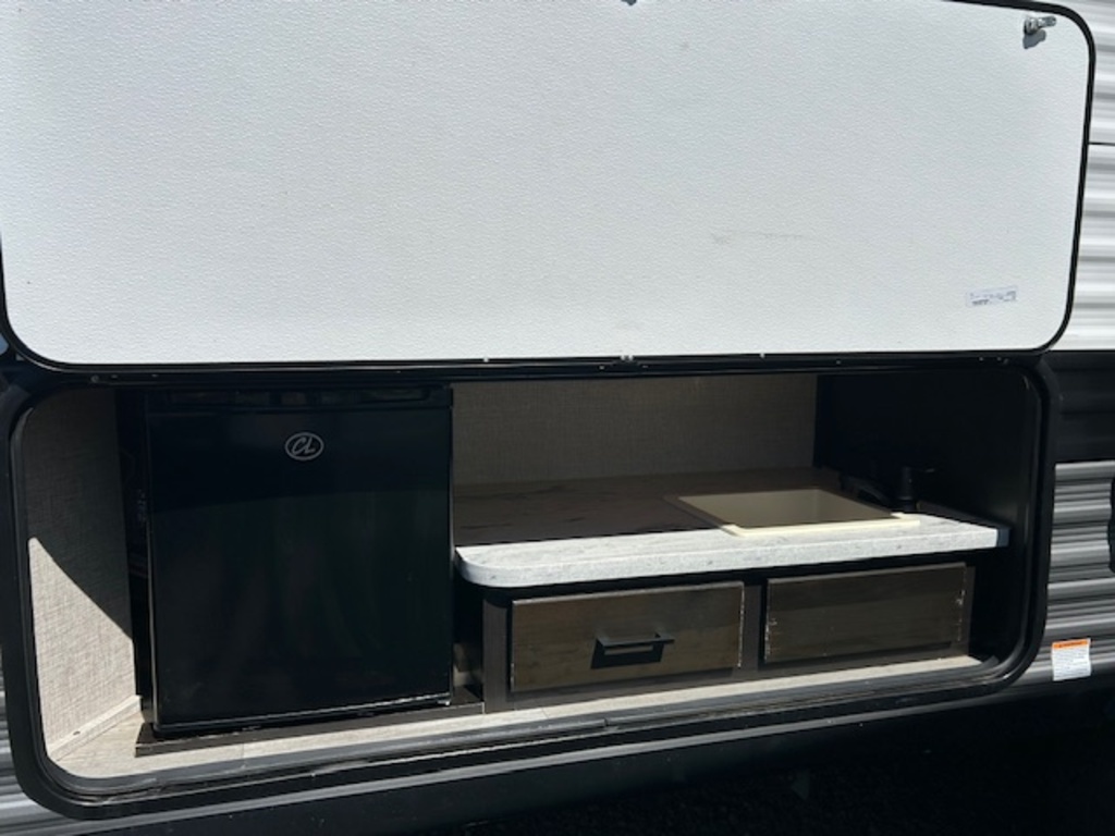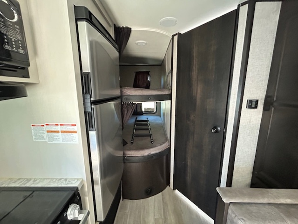 Options : Réservoir de propane, Climatiseur au plafond, Vérin stabilisateur, Toilette, Lits superposés, Prise électrique, Antenne pour téléviseur, Micro-onde, Hotte, Auvent, Chauffe-eau
