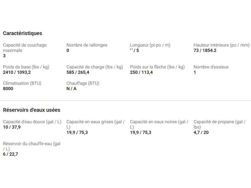 | Rallonges | N/A |