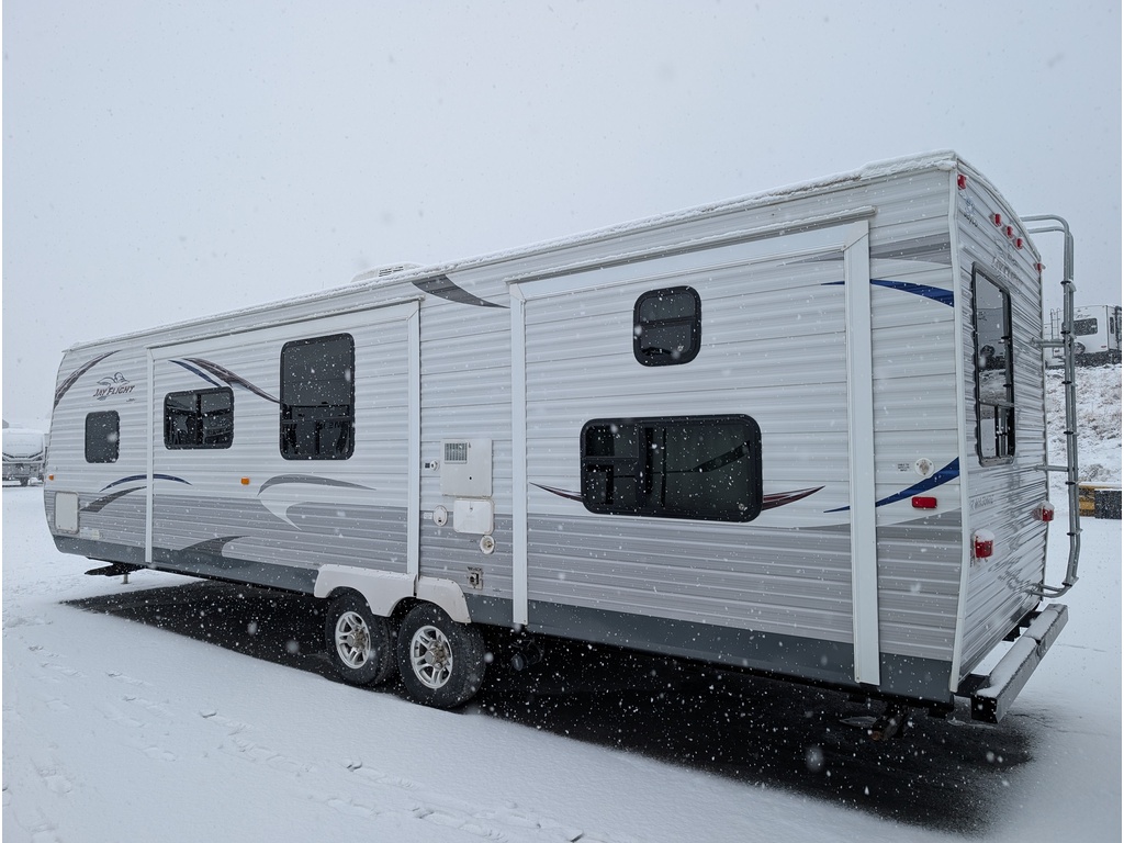 Caravane de voyage JAYFLIGHT SLX 2012 par Jayco ??IRRÉCUPÉRABLE, ne peut plus être plaquée, ne peut pas retourner sur la route Parfait pour être stationnaire, appareils vérifiés et fonctionnels Description: -Poids: 8237 lbs -Longueur hors tout: 36 pieds 4 pouces -2 extensions -Grand lit 74x60 -3 lits superposés 73x38 -Dinette banquette en U 70x40 -Réfrigérateur au propane -Air climatisé -Four avec cuisinière à 3 brûleurs -Sofa lit 62x46 -Cuisine extérieure ET PLUS ENCORE! ?Vendu tel quel! Voir photo! POUR PLUS D'INFOS, WWW.VRMAGUIRE.COM, SANS FRAIS 1-888-799-0874, BUREAU 418-774-5066, CELL OU MESSAGE TEXTE KEVIN 418-386-0025, AU PLAISIR DE VOUS SERVIR ET À BIENTÔT!