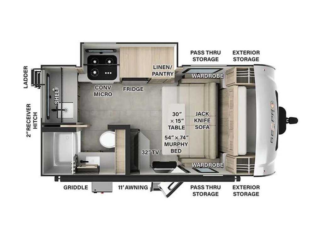 Rockwood Geopro 15FBS 2025Roulotte – Rockwood 15FBS Geopro 2025 - Petite par sa taille, grande par son ingéniosité — la Geo Pro G15FBS 2025 est parfaite pour les campeurs qui veulent tout avoir, même en format compact. Dimensions & Capacités : • Longueur totale : 17.5 pieds • Poids à sec : 3 503 lbs • Réservoir d’eau douce : 31 gal • Réservoirs d’eaux usées : 54 gal • Couchages : Jusqu’à 2 personnes 5 caractéristiques principales : • Coin cuisine pratique avec banquette escamotable - Une cuisine fonctionnelle grâce à la rallonge (slide-out) et une banquette convertible qui se déplie facilement pour offrir un vrai endroit pour dormir — sans compromettre l’espace. • Murphy bed confortable - Le lit Murphy se plie contre le mur en journée pour libérer de l’espace, puis se déploie pour offrir un grand lit nocturne — malin et parfait pour optimiser la surface intérieure. • Salle de bain complète - Une vraie salle de bain avec douche, toilette et lavabo, qui rend les sorties plus agréables, même lors des journées grises ou en camping prolongé. • Cuisine extérieure sous auvent - Une crêpière/grillade à l’extérieur permet de cuisiner en plein air, idéal pour profiter du campement sans encombrer l’intérieur. • Compacte à tirer, spacieuse à vivre – Facile à manœuvrer sur la route grâce à son format compact, mais étonnamment bien aménagée à l’intérieur. Elle offre tout le confort nécessaire sans encombrer, idéale pour ceux qui veulent voyager léger… mais vivre grand. Petite par sa taille, grande par son ingéniosité — la Geo Pro G15FBS 2025 est parfaite pour les campeurs qui veulent tout avoir, même en format compact. *** Prendre note que les photos et les options décrites peuvent différées *** Toute l'équipe de Centre du VR est fière de vous présenter le plus vaste inventaire de véhicules récréatifs neufs et d'occasions à vendre au Québec. Vous y trouverez notamment les marques Columbus, Rockwood, Impression, Kodiak, Coleman, Cruiser RV, Flagstaff, E-Pro, Springdale, Sunset Trail, Cougar, Chaparral, Bontrager Outdoors, motorisés Axis, Hurricane, Outlaw, Coachmen Cross Trail, Prism, Echelon, Fleetwood, Four winds, Compass, Beyond, Nova et Pixel. Remorques N&N, Apogée et Armorteck sont aussi disponibles. En inventaire pour vous, la série de génératrices Ducar. Vous avez un coup de coeur ? Envoyez-nous une demande d'information. Financement sur place. N'oubliez pas également que rien ne vaut une visite du modèle qui vous intéresse pour vous aider à prendre une décision éclairée. Passez donc nous voir afin de jeter un coup d'oeil plus détaillé à nos caravanes et caravanes à sellettes neuves.