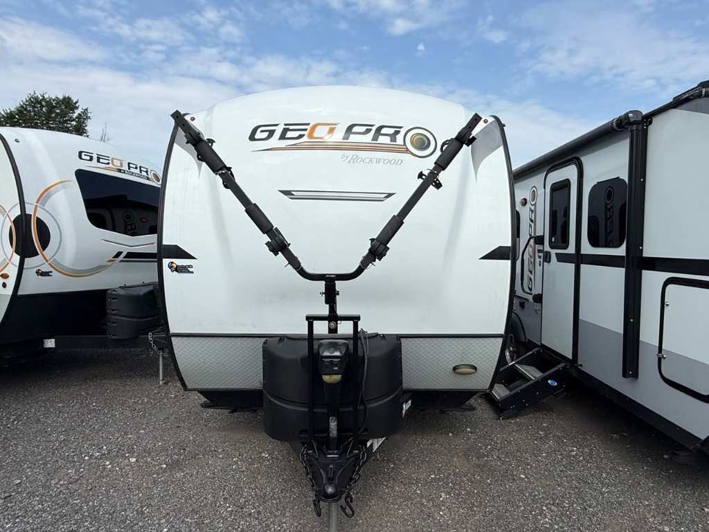 Rockwood geopro 19fd 2019Roulotte – Forest River 2019 – Rockwood GeoPro - La Rockwood Geo Pro G19FD de 2019 est une petite roulotte de voyage (travel trailer) bien pensée, idéale pour les couples ou petits groupes en quête de confort et de simplicité. Dimensions et capacités : • Longueur : 20 pieds • Poids à sec : 2 829 lbs • Réservoir d’eau douce : 37 gal • Réservoirs d’eaux usées : 60 gal • Couchages : Jusqu’à 3 personnes 5 caractéristiques principales : • Son lit escamotable permet de gagner de l’espace durant la journée. • La salle de bain arrière est étonnamment spacieuse pour une roulotte compacte. • Elle est bien équipée pour le hors-réseau avec panneau solaire, auvent électrique et Wi-Fi prêt. • Ses réservoirs d’eau offrent une bonne autonomie pour un format aussi petit. • Sa construction légère et robuste la rend durable et facile à tracter. Compacte mais ingénieuse, la Geo Pro G19FD marie confort, robustesse et autonomie, ce qui en fait un choix malin pour voyager sans encombre. *** Prendre note que les photos et les options décrites peuvent différées *** Toute l'équipe de Centre du VR est fière de vous présenter le plus vaste inventaire de véhicules récréatifs neufs et d'occasions à vendre au Québec. Vous y trouverez notamment les marques Columbus, Rockwood, Impression, Kodiak, Coleman, Cruiser RV, Flagstaff, E-Pro, Springdale, Sunset Trail, Cougar, Chaparral, Bontrager Outdoors, motorisés Axis, Hurricane, Outlaw, Coachmen Cross Trail, Prism, Echelon, Fleetwood, Four winds, Compass, Beyond, Nova et Pixel. Remorques N&N, Apogée et Armorteck sont aussi disponibles. En inventaire pour vous, la série de génératrices Ducar. Vous avez un coup de coeur ? Envoyez-nous une demande d'information. Financement sur place. N'oubliez pas également que rien ne vaut une visite du modèle qui vous intéresse pour vous aider à prendre une décision éclairée. Passez donc nous voir afin de jeter un coup d'oeil plus détaillé à nos caravanes et caravanes à sellettes neuves.