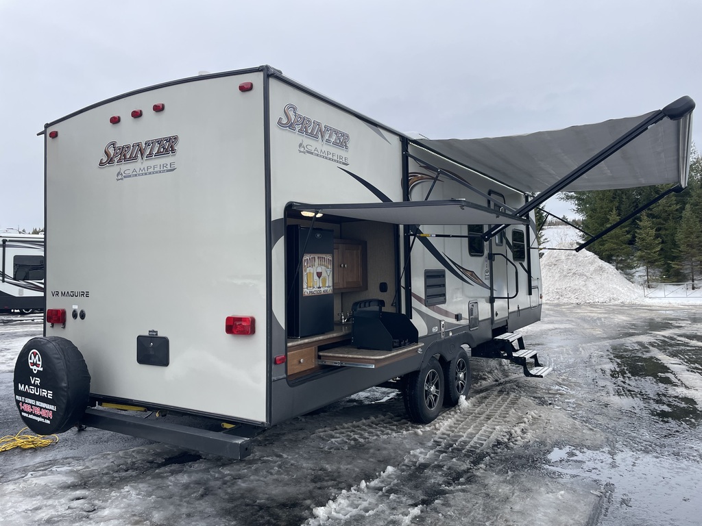 LA CARAVANE DE VOYAGE SPRINTER CAMPFIRE 26RB 2017 PAR KEYSTONE A UNE LONGUEUR HORS TOUT DE 29 PIEDS 8 POUCES POUR UN POIDS DE 6855 LBS, UNE EXTENSION DOUBLE, PEUT ACCUEILLIR JUSQU'À 6 PERSONNES POUR COUCHER, CHAMBRE FERMÉE AVEC LIT 79X59, DIVAN LIT 73X53, DINETTE BANQUETTE 66X42, RÉFRIGÉRATEUR AVEC CONGÉLATEUR AU PROPANE, FOUR AVEC CUISINIÈRE À 3 BRÛLEURS, CUISINE EXTÉRIEURE, AUVENT ÉLECTRIQUE, BARRE DE SON ET PLUS ENCORE! TRÈS BELLE ROULOTTE AVEC BEAUCOUP DE RANGEMENT! ROULOTTE VENDU INSPECTÉE ET GARANTIE. À SEULEMENT 40 MINUTES DES PONTS DE QUÉBEC. LIVRAISON DISPONIBLE PARTOUT AU QUÉBEC! PROFITEZ DE NOTRE FINANCEMENT FACILE ET RAPIDE. POUR PLUS D'INFOS, WWW.VRMAGUIRE.COM, SANS FRAIS 1-888-799-0874, BUREAU 418-774-5066, CELL OU MESSAGE TEXTE KEVIN 418-386-0025, AU PLAISIR DE VOUS SERVIR ET À BIENTÔT! **TOUJOURS LES MEILLEURS PRIX DU MARCHÉ**