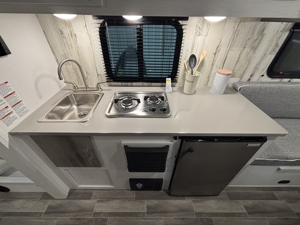 TRAVEL LITE ROVE LITE 14FBC 2026 ROULOTTE POUR COUPLE ULTRA LÉGÈRE AVEC UN POIDS DE 1900 LIVRES INTÉRIEUR: - Cuisine avec évier, 2 ronds de poêle et réfrigérateur - Petit comptoir avec rangement pour la poubelle - Grande banquette qui se transforme en lit - Grande salle de bain arrière avec douche et rangement EXTÉRIEUR: - Auvent électrique - Coffres de rangement photos à titr eindicatif