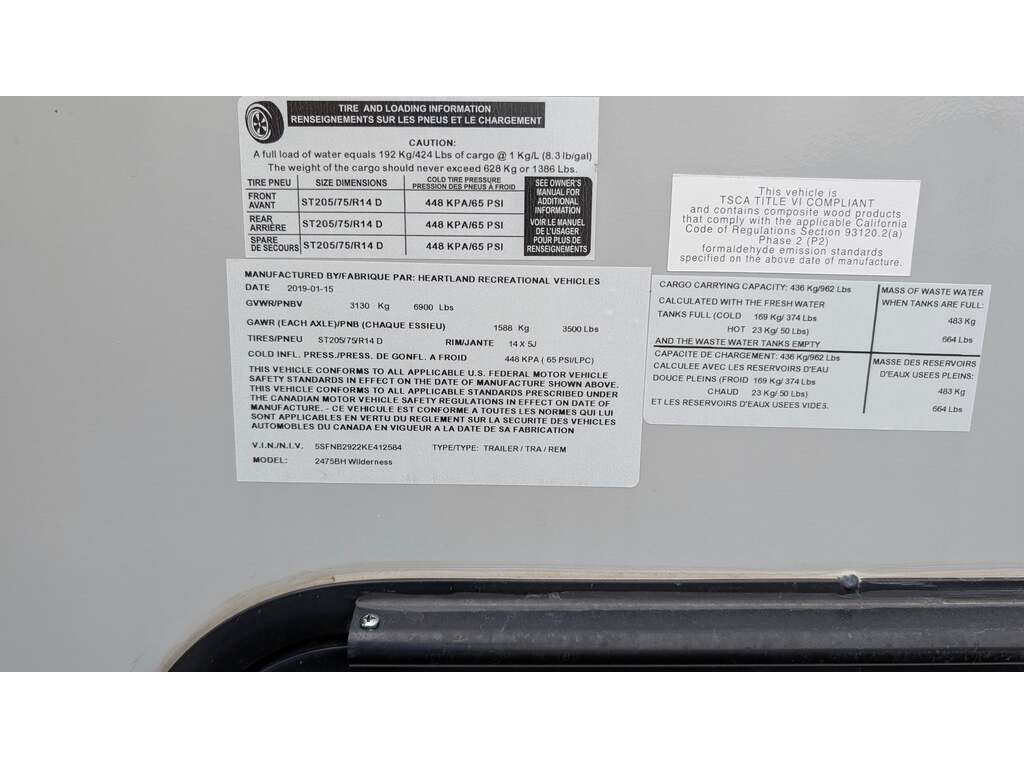 Roulotte WILDERNESS 2475BH 2019 à vendre – Confort et aventure en famille Découvrez la roulotte WILDERNESS 2475BH 2019, un choix idéal pour les amateurs de camping à la recherche d’une remorque de voyage spacieuse, confortable et abordable. Parfaite pour les familles ou les groupes, cette roulotte usagée offre un équilibre parfait entre fonctionnalité et commodité, idéale pour vos escapades en nature au Québec ou ailleurs. Caractéristiques principales : - Modèle : WILDERNESS 2475BH 2019 - Longueur : 29 pieds, parfaite pour un camping familial - Capacité : Jusqu’à 8 personnes - Disposition : Lit superposé (bunkhouse), chambre principale avec lit queen, salon spacieux - Cuisine : Équipée d’un réfrigérateur, micro-ondes, cuisinière à 3 brûleurs et évier double - Salle de bain : Douche, toilette et lavabo pour un confort optimal - Rangement : Nombreux espaces de rangement pour vos équipements de camping - Climatisation et chauffage : Pour un confort en toutes saisons - Auvent électrique : Espace extérieur ombragé pour vos moments de détente - Poids : 5 500 lb, facile à tracter avec un véhicule adapté - État : Très bien entretenu, roulotte usagée en excellent état Avantages de la WILDERNESS 2475BH 2019 : Cette roulotte familiale est conçue pour maximiser l’espace et le confort. Avec ses lits superposés, elle est parfaite pour les enfants, tandis que la chambre principale offre un espace privé pour les parents. La cuisine entièrement équipée et le salon avec dinette convertible permettent de profiter pleinement de vos séjours en camping. Que vous partiez pour un week-end ou une longue aventure, cette roulotte légère et robuste répondra à vos besoins. Pourquoi choisir cette roulotte usagée ? - Prix compétitif : Une roulotte 2019 de qualité à un prix abordable - Polyvalence : Idéale pour le camping en famille, les escapades en couple ou les voyages entre amis - Fiabilité : Marque reconnue pour sa durabilité et son design fonctionnel - Disponibilité immédiate : Prête pour vos prochaines aventures Contactez-nous dès aujourd’hui pour plus d’informations ou pour planifier une visite ! Profitez de cette occasion pour acquérir une roulotte WILDERNESS 2475BH 2019 en excellent état et commencez vos aventures en camping dès maintenant.