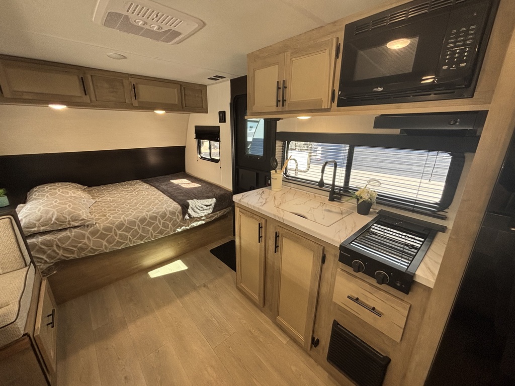 VENDU !!! WOLF PUP 17JW 2025 Superbe roulotte familiale avec lit queen et lits superposés doubles pour les enfants. Facile à remorquer avec un poids de seulement 4200 lbs. Elle possède une extension dans laquelle se retrouve une superbe banquette en ''U''. Cette roulotte est une édition limitée avec énormément d'équipements qui vous plairont tel que le grand réfrigérateur avec congélateur à part ; les roues en alliage ; climatisation sur le toit ; préparation pour panneau solaire ; petit réfrigérateur extérieur ; douchette extérieure ; chauffe eau à allumage électronique ; stéréo avec haut-parleurs intérieurs et extérieurs. Elle est très bien équipée pour profiter de l'extérieur avec son auvent électrique ainsi que les marches ultra-robustes. Beaucoup mieux équipée que Swift, Viking ou Clipper. Financement facile sur place. photos à titre indicatif