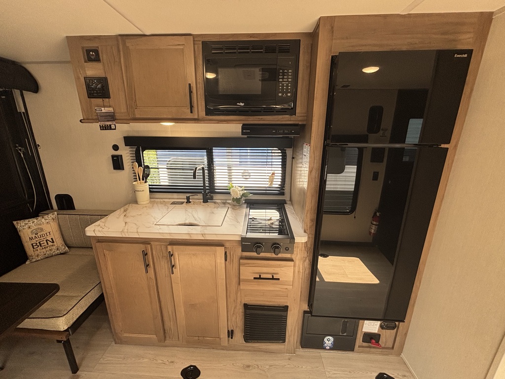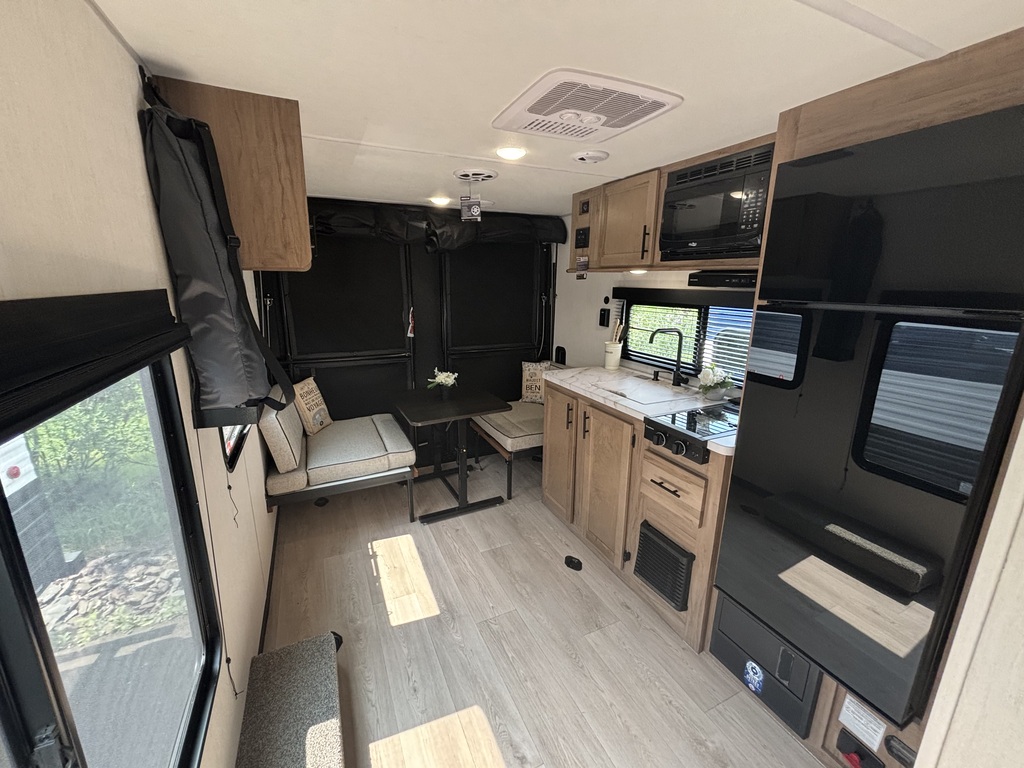 EN INVENTAIREI!!! Wolf Pup 18RJB 2026. Idéale pour transporter facilement votre moto, votre VTT etc. Elle pèse 3800 lbs. Super bien équipée avec une cuisine munie d'un évier, grand réfrigérateur et cuisinière. La table se transforme en lit supplémentaire, ce qui permet d'accueillir environ 3 personnes à coucher dans la roulotte. La salle de bain possède un bain douche. La chambre est situé à l'avant de la roulotte avec un lit queen ainsi qu'un petit lit superposé. La rampe d'accès arrière se transforme en patio. Porte arrière pleine grandeur. Absolument à voir. Financement facile sur place.