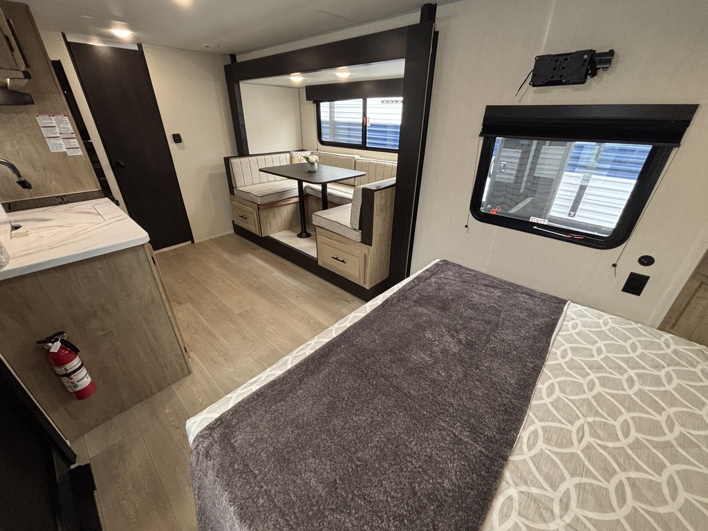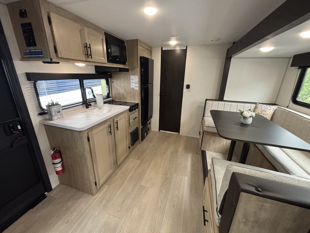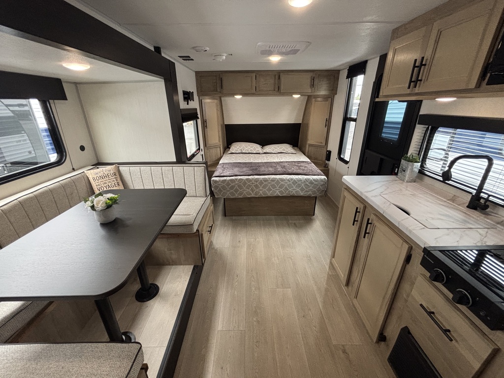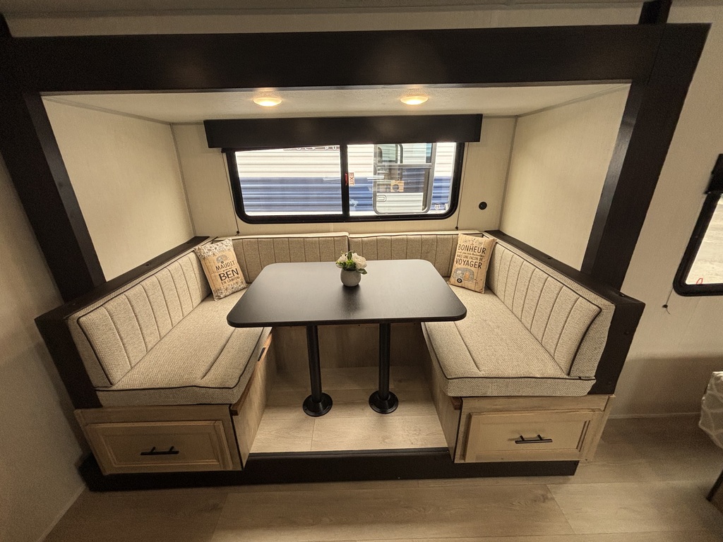 Wolf Pup 16KHW 2026 . ROULOTTE POUR COUPLE AVEC UN POIDS DE 4000 LIVRES INTÉRIEUR: - Cuisine avec évier, 2 ronds de poêle, micro-ondes et grand réfrigérateur - Grande banquette en U devant une belle fenestration - Grand lit avant entouré de rangement - Salle de bain arrière avec bain-douche et belle vanité EXTÉRIEUR: - Auvent électrique - Coffre de rangement - Marches ultra robustes - Petit frigo extérieur - Stabilisateurs électriques photos à titre indicatif