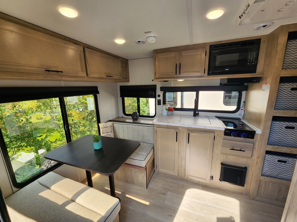 WOLF PUP 16CM 2026 ROULOTTE POUR COUPLE AVEC UN POIDS DE 3800 LIVRES INTÉRIEUR: - Cuisine toute équipée avec banquette double arrière qui se transforme en lit - Salle de bain centrale avec bain-douche et vanité - Chambre avant avec grand lit EXTÉRIEUR: - Marches robustes - Auvent électrique - Coffres de rangement - Douchette extérieure photos à titre indicatif