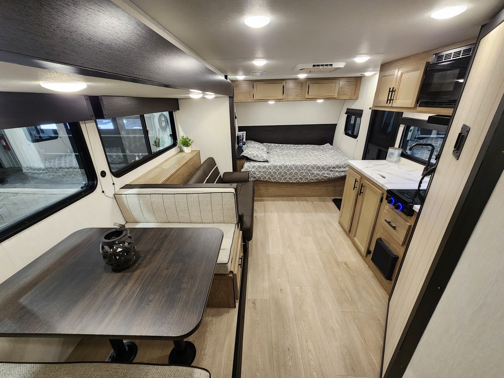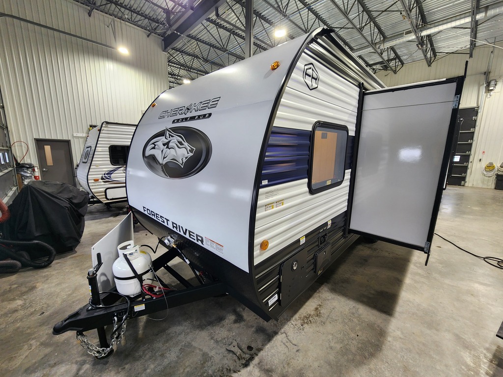 NOUVEAU MODÈLE! ROULOTTE POUR COUPLE WOLF PUP 18PB 2026 Elle pèse seulement 4450 lbs, peut coucher jusqu'à 4 personnes!! INTÉRIEUR: - Cuisine entièrement équipée - Grand réfrigérateur - Garde-manger caché derrière l'emplacement télévision - Banquette et sofa transformables en lits supplémentaires - Salle de bain entièrement équipée - Chambre avant avec grand lit EXTÉRIEUR: - Auvent électrique avec lumière LED - Petit réfrigérateur extérieur - Vérins stabilisateurs électriques - 2 coffres de rangement - Marches solides *Photos à titre indicatif*