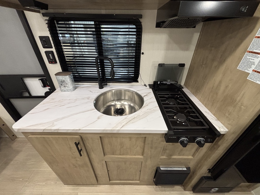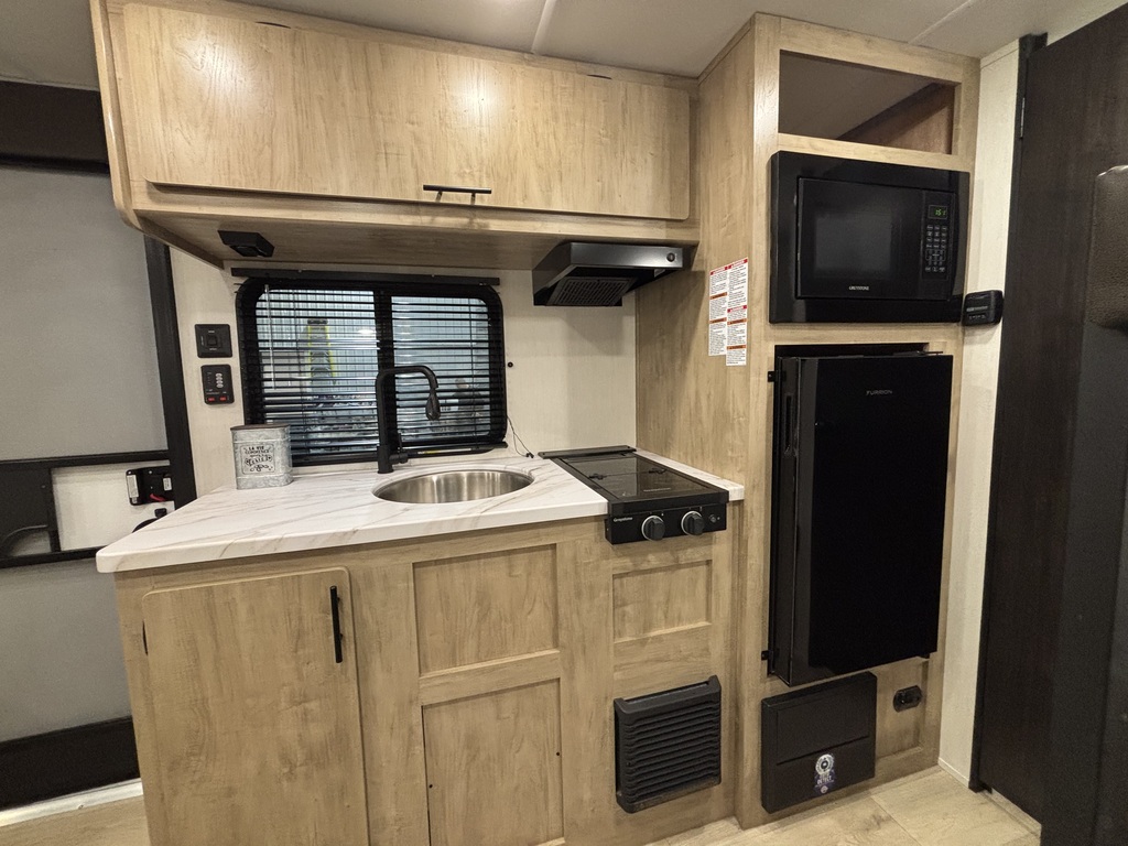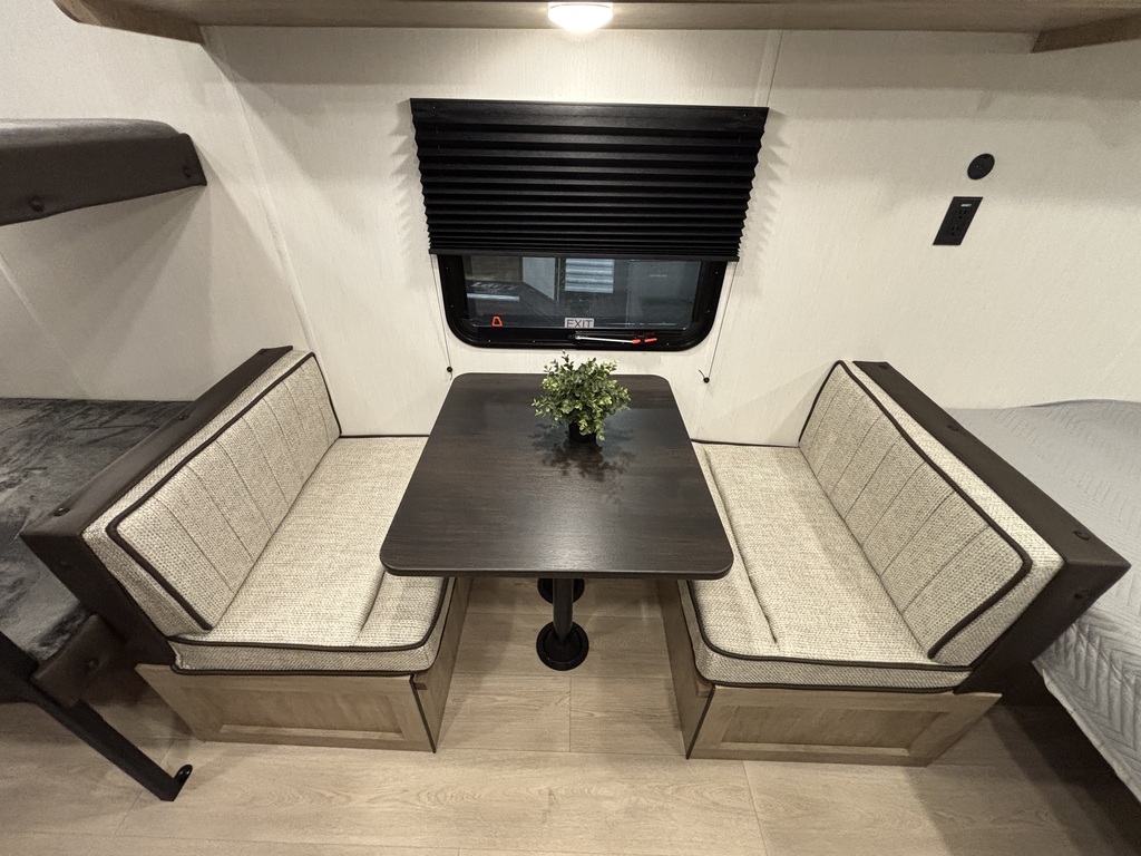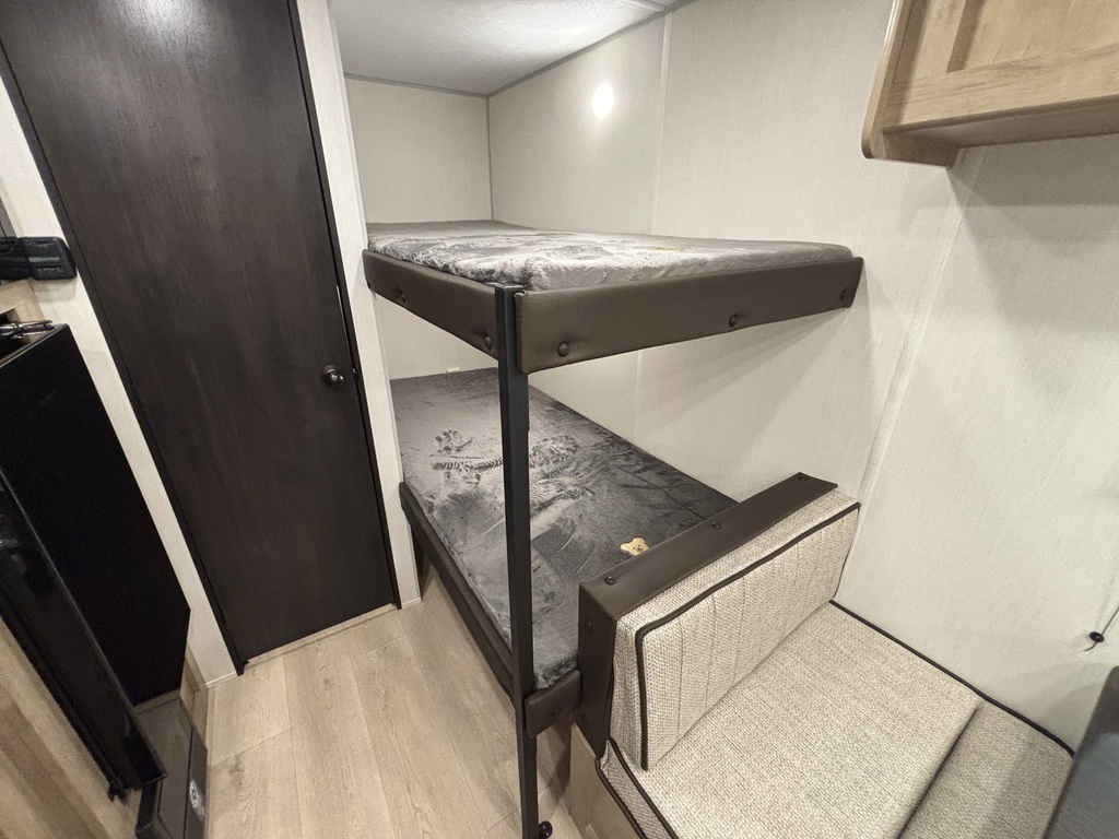 WOLF PUP 16LP 2026. ROULOTTE FAMILIALE TRÈS LÉGÈRE AVEC UN POIDS DE 3050 LIVRES INTÉRIEUR: - Cuisine toute équipée - Banquette simple qui se transforme en lit - Grand lit avant - Lits superposés simples arrière - Salle de bain arrière avec bain-douche EXTÉRIEUR - Auvent électrique - Coffres de rangement photos à titre indicatif