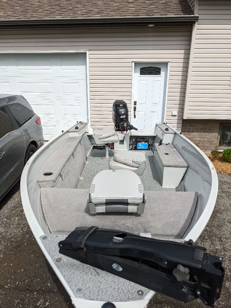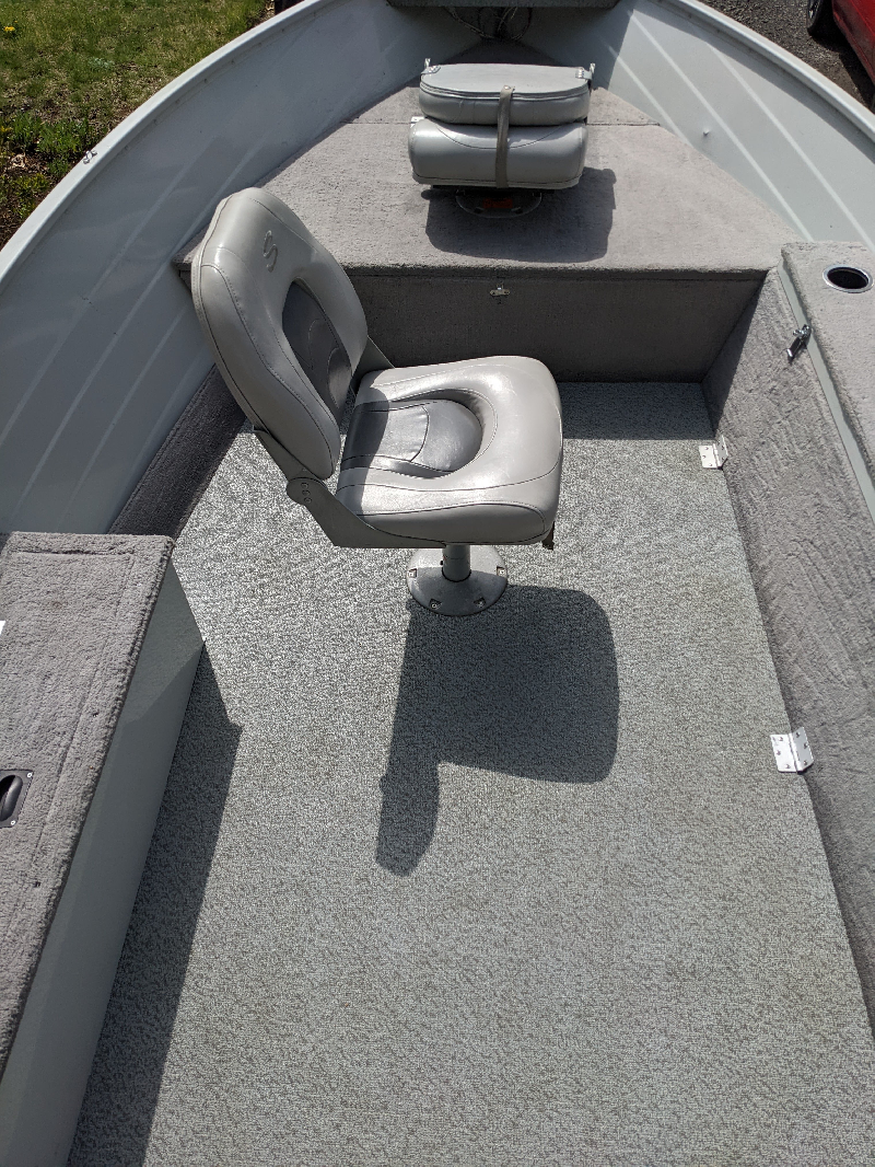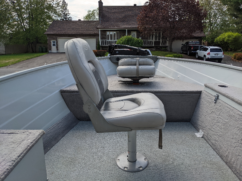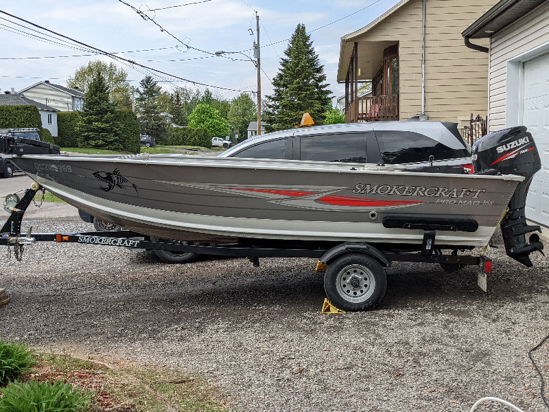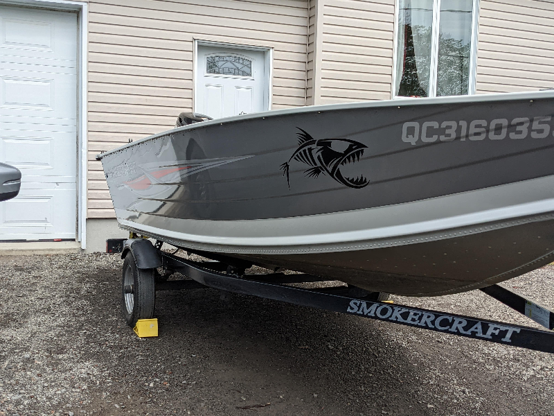 Bateau en très bonne condition! Extérieur: Showroom Intérieur: Quelques histoires de pêche mais le gris pâle est tjrs gris pâle ;) . Peut embarquer jusqu'à 5 personnes. Moteur Suzuki 40 HP, 4 temps 2016 .(acheté neuf en 2018) 290 hres au compteur. Moteur électrique en avant 55 lbs. Vivier assez gros pour un quota ;) 3 bancs d'origine. Toit bimini bleu. Réservoir 45 litres dans le deck en avant. Ancre. Remorque Shorelander Smokercraft. Pneus et mag neufs (non posés) (2022) Prêt à aller sur l'eau. Qui aura la chance de vivre de belles histoires de pêche?