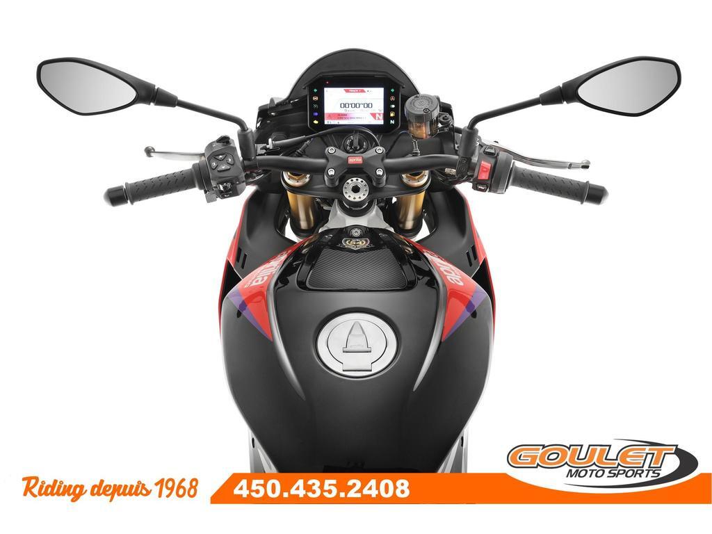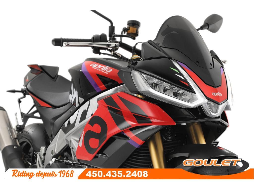 APRILIA TUONO V4 1100 FACTORY - TIME ATTACK \*\*\* TRANSPORT ET PRÉPARATION INCLUS DANS LE PRIX. 1800$ DE RABAIS INCLUS \*\*\* L'Aprilia Tuono V4 Factory est une véritable machine à performance, avec de nouvelles lignes, un nouvel aérodynamisme avec des ailerons intégrés, un bras oscillant issu du Moto GP, une électronique avancée et 175 puissants chevaux. La version Factory possède une position de conduite plus sportive, la coque arrière de la RSV4 mais surtout les Suspensions Électronique Active Olhins - Moteur V4 de 1077cc devellopant 175hp et 89 lbs-ft de couple (torque). - Nouveau bras oscillant (swingarm) en aluminium plus léger et doté d'un renfort inférieur comme en MotoGP. - Suspension Électronique Active par Olhins. - 6 modes de conduites, 3 pour la route, 3 pour la piste - Traction Control ajustable en route (8 modes), Wheelie Control (3 modes), Frein Moteur ajustable, ABS ajustable - Quickshift Up&Down - Régulateur de vitesse (Cruise Control) - Écran couleur TFT, Bluetooth ready. - Groupe lumière avant au LED. La moto est chez Goulet Moto Sports de Ste-Thérèse. Téléphonez au 450.435.2408 Possibilité de financement avec plusieurs institutions financières. 2ième chance au crédit disponible. Prix spécial ne peux pas être combiné avec le financement spécial Aprilia Goulet Moto Sports est votre concessionnaire moto depuis 1968. Fier représentant officiel des marques HONDA, APRILIA, MOTO GUZZI, VESPA, PIAGGIO, KTM et les sidecars URAL pour le grand Montréal. Nous avons un énorme choix de moto usagés inspectées par nos professionnels. 2 adresses pour vous servir, soit à Sainte-Thérèse (450.435.2408) et Saint-Jérôme (450.431.6622). Goulet Moto Sports ne peut être tenu responsable d'une omission, d'un délai ou d'une erreur de transcription de l'information. Le prix affiché réflète la condition de l'unité. Pour différentes raisons les prix peuvent différer de ceux indiqués en ligne. Les données sont affichées à titre indicatif seulement et ne peuvent être considérées comme une information contractuelle. Nous vous encourageons vivement à nous consulter pour plus de détails avant de vous déplacer. Des frais tels que taxes, frais de préparation, administrations ou autres peuvent s'appliquer. Comparable a une Ducati streetfighter, BMW S1000R, KTM Superduke, Yamaha MT-10, Honda CB1000R Essence, Transmission: Manuelle, 6 vitesses, Système de refroidissement: Refroidi au liquide, 4 cylindres, 175.0 CV, 1077.0 CC, Poids: 407.00 lbs, Garantie: 2 ANS ---------------------- APRILIA TUONO V4 1100 FACTORY - TIME ATTACK \*\*\* TRANSPORT AND PREPARATION INCLUDED IN THE PRICE \*\*\* The Aprilia Tuono V4 Factory is a true performance machine, with new lines, new aerodynamics with integrated fins, a Moto GP-derived swingarm, advanced electronics and 175 powerful horsepower. The Factory version has a sportier driving position, the rear hull of the RSV4 but above all the Olhins Active Electronic Suspensions - 1077cc V4 engine developing 175hp and 89 lbs-ft of torque (torque). - New swingarm in lighter aluminum and equipped with a lower reinforcement like in MotoGP. - Active Electronic Suspension by Olhins. - 6 driving modes, 3 for the road, 3 for the track - Traction Control adjustable on the road (8 modes), Wheelie Control (3 modes), Adjustable Engine Brake, Adjustable ABS - Quickshift Up&Down - Cruise control (Cruise Control) - TFT color display, Bluetooth ready. - LED front light group. This unit is at Goulet Moto Sports in Ste-Thérèse. Call 450.435.2408 Financing available with several financial institutions. Second chance credit available. Special pricing cannot be combined with Aprilia special financing. Goulet Moto Sports has been your motorcycle dealership since 1968. We are a proud official representative of HONDA, APRILIA, MOTO GUZZI, VESPA, PIAGGIO, KTM, and URAL sidecars in Greater Montreal. We have a huge selection of used motorcycles inspected by our professionals. We have two locations to serve you: Sainte-Thérèse (450.435.2408) and Saint-Jérôme (450.431.6622). Goulet Moto Sports cannot be held responsible for any omissions, delays, or errors in the transcription of information. The price displayed reflects the condition of the unit. For various reasons, prices may differ from those indicated online. The data displayed is for informational purposes only and should not be considered contractual information. We strongly encourage you to contact us for more details before traveling. Fees such as taxes, preparation fees, administration, or other charges may apply. Comparable to a Ducati streetfighter, BMW S1000R, KTM Superduke, Yamaha MT-10, Honda CB1000R Gasoline, Transmission: Manual, 6 speeds, Cooling System: Liquid cooling, 4 cylinders, 175.0 HP, 1077.0 CC, Weight: 407.00 lbs, Warranty: 2 ANS
