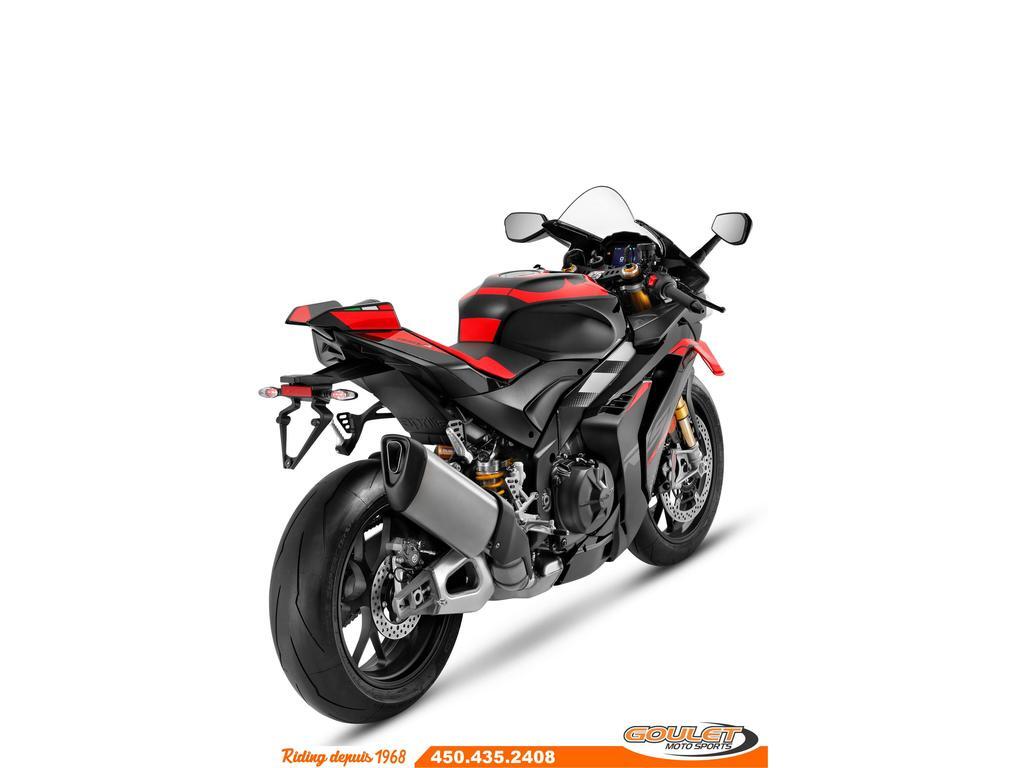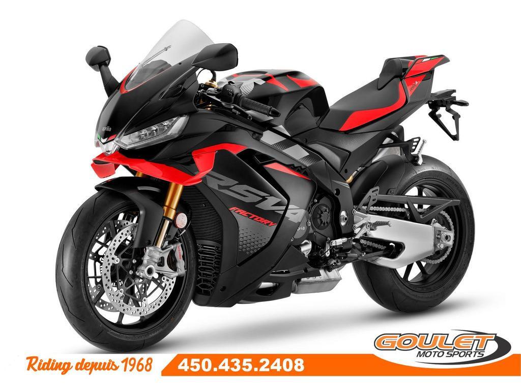 APRILIA RSV4 V4 1100 FACTORY 2025 - DARK KRAKEN \*\*\* TRANSPORT ET PRÉPARATION INCLUS DANS LE PRIX \*\*\* La moto Super Sportive dérivé de la course par Aprilia. La réputation de la RSV4 n'est plus à faire grâce à son moteur unique V4 de 220hp. Désormais dotée de winglets intégrés, d'une efficacité aérodynamique améliorée, associés au châssis unique d'Aprilia, son nouveau bras oscillant et son package électronique complet, la Aprilia RSV4 est la reine de la catégorie sport. - Moteur amélioré : Nouveau moteur V4 de 1099 cm³, offrant 220 chevaux pour une performance maximale sur route et circuit. - Suspension Öhlins Smart EC 2.0 : Suspension électronique de haute performance, permettant un ajustement en temps réel. - Système APRC de dernière génération : Nouvelles versions des systèmes Traction Control, Wheelie Control, et Launch Control - Design retravaillé : Nouveau carénage plus aérodynamique et un look plus agressif, améliorant la stabilité à haute vitesse. - Écran TFT couleur : Nouveau tableau de bord avec interface Bluetooth - Freins Brembo avec Cornering ABS : Technologie avancée pour une sécurité maximale en courbe et un freinage ultra-réactif. - Batterie lithium-ion : Moins de poids et meilleure performance énergétique. - Nouveaux modes de conduite : Cinq modes sélectionnables pour adapter la moto à différentes conditions de conduite. - Commandes avec rétroéclairage LED : Les boutons sont désormais rétroéclairés, offrant une meilleure visibilité dans des conditions de faible éclairage. Cette unité est chez Goulet Moto Sports de Ste-Thérèse. Téléphonez au 450.435.2408 Possibilité de financement avec plusieurs institutions financières. 2ième chance au crédit disponible. Goulet Moto Sports est votre concessionnaire moto depuis 1968. Fier représentant officiel des marques HONDA, APRILIA, MOTO GUZZI, VESPA, PIAGGIO, KTM, NIU, SURRON et URAL pour le grand Montréal. Nous avons un énorme choix de moto usagés inspectées par nos professionnels. 2 adresses pour vous servir, soit à Sainte-Thérèse (450.435.2408) et Saint-Jérôme (450.431.6622). Goulet Moto Sports ne peut être tenu responsable d'une omission, d'un délai ou d'une erreur de transcription de l'information. Le prix affiché reflète la condition de l'unité. Pour différentes raisons les prix peuvent différer de ceux indiqués en ligne. Les données sont affichées à titre indicatif seulement et ne peuvent être considérées comme une information contractuelle. Nous vous encourageons vivement à nous consulter pour plus de détails avant de vous déplacer. Des frais tels que taxes, immatriculation, administrations ou autres peuvent s'appliquer. Se compare avantageusement à une BMW S1000RR, Ducati Panigale, Yamaha R1, Kawasaki ZX-10, Suzuki GSXR1000 Essence, Transmission: Manuelle, 6 vitesses, Système de refroidissement: Refroidi au liquide, 4 cylindres, 220.0 CV, 1099.0 CC, Garantie: 2 ANS ---------------------- APRILIA RSV4 V4 1100 FACTORY 2025 - DARK KRAKEN \*\*\* TRANSPORT AND PREPARATION INCLUDED IN THE PRICE \*\*\* The Super Sport bike derived from racing by Aprilia. The reputation of the RSV4 is well established thanks to its unique V4 engine producing 220hp. Now equipped with integrated winglets, improved aerodynamic efficiency, combined with Aprilia's unique chassis, new swingarm, and a complete electronic package, the Aprilia RSV4 is the queen of the sport category. - Improved Engine: New 1099 cm³ V4 engine, delivering 220 horsepower for maximum performance on both road and track. - Öhlins Smart EC 2.0 Suspension: High-performance electronic suspension for real-time adjustments. - Next-Generation APRC System: New versions of Traction Control, Wheelie Control, and Launch Control systems, - New Electronics: Enhanced Ride-by-Wire system for finer throttle and power management. - Redesigned Aesthetics: New, more aerodynamic fairing with a more aggressive look, improving stability at high speeds. - Color TFT Display: New dashboard with Bluetooth interface for modern connectivity and more precise riding information. - Brembo Brakes with Cornering ABS: Advanced technology for maximum safety in corners and ultra-responsive braking. - Lithium-ion Battery: Lighter weight and better energy performance. - New Riding Modes: Five selectable modes to adapt the bike to different riding conditions. - Backlit LED Command Buttons: Buttons are now backlit for better visibility in low light conditions. This unit is available at Goulet Moto Sports in Ste-Thérèse. Call us at 450-435-2408. Financing options available through multiple financial institutions. 2nd chance credit available. Goulet Moto Sports has been your motorcycle dealer since 1968. Proud official representative of the brands HONDA, APRILIA, MOTO GUZZI, VESPA, PIAGGIO, KTM, NIU, SURRON, and URAL for the Greater Montreal area. We offer a huge selection of professionally inspected used motorcycles. We have two locations to serve you: Sainte-Thérèse (450-435-2408) and Saint-Jérôme (450-431-6622). Goulet Moto Sports cannot be held responsible for omissions, delays, or transcription errors. The displayed price reflects the condition of the unit. Prices may differ for various reasons from what is indicated online. The information is provided for guidance purposes only and should not be considered contractual. We strongly recommend that you consult us for more details before coming in. Additional fees such as taxes, registration, administration, or others may apply. Compares favorably to a BMW S1000RR, Ducati Panigale, Yamaha R1, Kawasaki ZX-10, Suzuki GSXR1000 Gasoline, Transmission: Manual, 6 speeds, Cooling System: Liquid cooling, 4 cylinders, 220.0 HP, 1099.0 CC, Warranty: 2 ANS