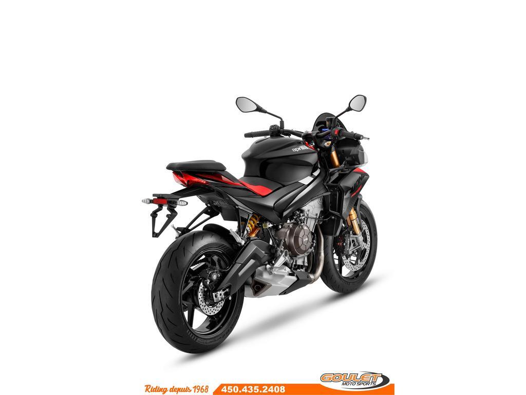 APRILIA TUONO 660 FACTORY 2025 - DARK BANSHEEE \*\*\* FRAIS DE TRANSPORT ET PRÉPARATION INCLUS DANS LE PRIX \*\*\* La version Factory de la Tuono 660 emprunte des équipements de la RS660 comme le quickshift ou la centrale d'inertie 6 axes IMU, en plus d'avoir une suspension et un amortisseur plus performant avec plus de possibilité d'ajustements. - Le nouveau bicylindre de 660 cm3 avec une puissance record de 105 cv et un couple incroyablement élevé.- - Commandes avec rétroéclairage LED: Les boutons sont désormais rétroéclairés, - Amortisseur SACHS avec réservoir séparé est réglable en compression, détente et précharge. - Suspension avant Kayaba est aussi ajustable (compression, rebound damping et pre-load) - Système APRC, modes de conduite, Contrôle de traction ajustable, Anti-wheelie, frein moteur, cruise control - Nouveau Tableau de bord couleur TFT 5pc, Bluetooth ready - Groupe optique avant à 3 éléments, tous équipés de LED. - Nouveau carénage aérodynamique avec effet downforce - Position de conduite plus confortable. Cette unité est chez Goulet Moto Sports de Ste-Thérèse. Téléphonez au 450.435.2408 Possibilité de financement avec plusieurs institutions financières. 2ième chance au crédit disponible. Financement spécial de Aprilia disponible sur prix PDSF. Goulet Moto Sports est votre concessionnaire moto depuis 1968. Fier représentant officiel des marques HONDA, APRILIA, MOTO GUZZI, VESPA, PIAGGIO, KTM, NIU, SURRON et URAL pour le grand Montréal. Nous avons un énorme choix de moto usagés inspectées par nos professionnels. 2 adresses pour vous servir, soit à Sainte-Thérèse (450.435.2408) et Saint-Jérôme (450.431.6622). Goulet Moto Sports ne peut être tenu responsable d'une omission, d'un délai ou d'une erreur de transcription de l'information. Le prix affiché reflète la condition de l'unité. Pour différentes raisons les prix peuvent différer de ceux indiqués en ligne. Les données sont affichées à titre indicatif seulement et ne peuvent être considérées comme une information contractuelle. Nous vous encourageons vivement à nous consulter pour plus de détails avant de vous déplacer. Des frais tels que taxes, immatriculation, administrations ou autres peuvent s'appliquer. Se compare à une Ducati Monster, Yamaha MT-07, Kawasaki Ninja 650, Honda CB650R, Suzuki GSX750F ou une KTM Duke 890 Essence, Transmission: Manuelle, 6 vitesses, Système de refroidissement: Refroidi au liquide, 2 cylindres, 105.0 CV, 660.0 CC, Garantie: 2 ans ---------------------- APRILIA TUONO 660 FACTORY 2025 - DARK BANSHEEE \*\*\* SHIPPING AND PREPARATION INCLUDED IN THE PRICE \*\*\* The Factory version of the Tuono 660 borrows features from the RS660, such as the quickshift and the 6-axis IMU, in addition to featuring more efficient suspension and shock absorbers with greater adjustment options. - The new 660cc twin-cylinder engine with a record 105 hp and incredibly high torque. - LED-backlit controls: The buttons are now backlit. - SACHS shock absorber with separate reservoir is adjustable for compression, rebound, and preload. - Kayaba front suspension is also adjustable (compression, rebound damping, and preload). - APRC system, riding modes, adjustable traction control, anti-wheelie, engine braking. cruise control - New 5inch TFT color instrument panel, Bluetooth ready. - 3-element front headlight cluster, all equipped with LEDs. - New aerodynamic fairing with downforce effect. - More comfortable riding position. This unit is at Goulet Moto Sports in Ste-Thérèse. Call 450.435.2408. Financing available with several financial institutions. Second chance credit available. Special Aprilia financing available on MSRP. Goulet Moto Sports has been your motorcycle dealership since 1968. Proud official representative of HONDA, APRILIA, MOTO GUZZI, VESPA, PIAGGIO, KTM, NIU, SURRON, and URAL for the greater Montreal area. We have a huge selection of used motorcycles inspected by our professionals. We have two locations to serve you: Sainte-Thérèse (450.435.2408) and Saint-Jérôme (450.431.6622). Goulet Moto Sports cannot be held responsible for any omissions, delays, or transcription errors. The price displayed reflects the condition of the unit. For various reasons, prices may differ from those shown online. The data displayed is for informational purposes only and should not be considered contractually binding. We strongly encourage you to contact us for more details before your visit. Fees such as taxes, registration, administration, and other charges may apply. Compare to a Ducati Monster, Yamaha MT-07, Kawasaki Ninja 650, Honda CB650R, Suzuki GSX750F, or a KTM Duke 890 Gasoline, Transmission: Manual, 6 speeds, Cooling System: Liquid cooling, 2 cylinders, 105.0 HP, 660.0 CC, Warranty: 2 ans