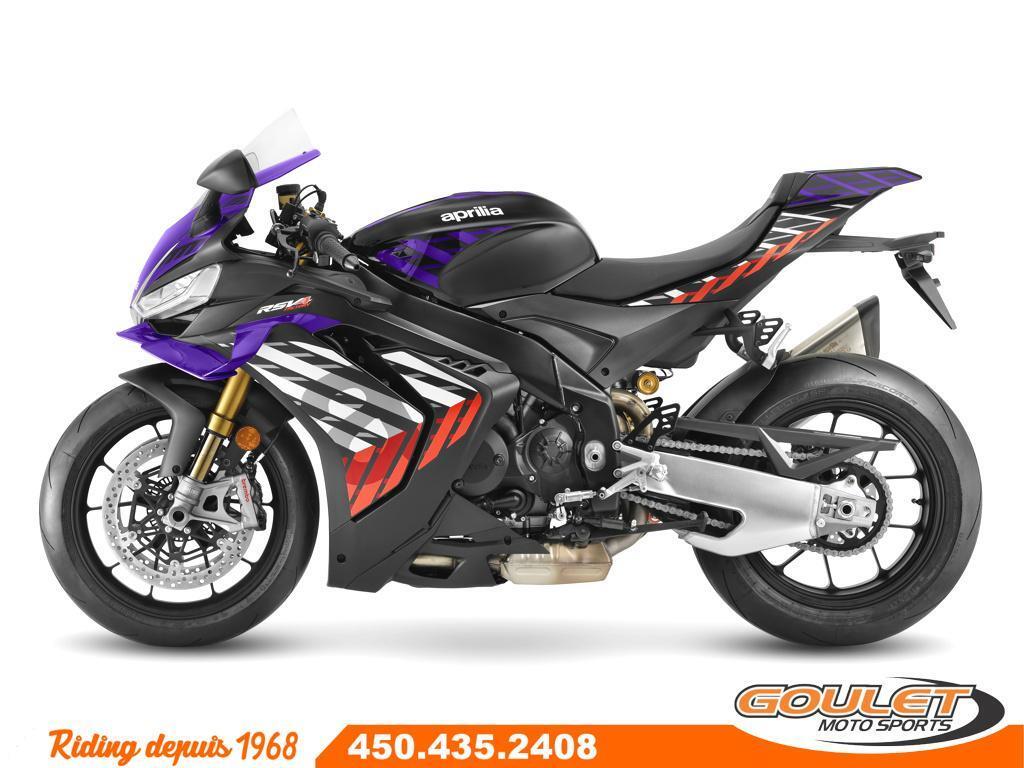 APRILIA RSV4 1100 FACTORY - SHAKEDOWN INDIGO \*\*\* Transport et préparation inclus dans le prix \*\*\* La moto Super Sportive dérivé de la course par Aprilia. La réputation de la RSV4 n'est plus à faire grâce à son moteur unique V4 de 220hp. Désormais dotée de winglets intégrés, d'une efficacité aérodynamique améliorée, associés au châssis unique d'Aprilia, son nouveau bras oscillant et son package électronique complet, la Aprilia RSV4 est la reine de la catégorie sport. - Moteur amélioré : Nouveau moteur V4 de 1099 cm³, offrant 220 chevaux pour une performance maximale sur route et circuit. - Suspension Öhlins Smart EC 2.0 : Suspension électronique de haute performance, permettant un ajustement en temps réel. - Système APRC de dernière génération : Nouvelles versions des systèmes Traction Control, Wheelie Control, et Launch Control - Design retravaillé : Nouveau carénage plus aérodynamique et un look plus agressif, améliorant la stabilité à haute vitesse. - Écran TFT couleur : Nouveau tableau de bord avec interface Bluetooth - Freins Brembo avec Cornering ABS : Technologie avancée pour une sécurité maximale en courbe et un freinage ultra-réactif. - Batterie lithium-ion : Moins de poids et meilleure performance énergétique. - Nouveaux modes de conduite : Cinq modes sélectionnables pour adapter la moto à différentes conditions de conduite. - Commandes avec rétroéclairage LED : Les boutons sont désormais rétroéclairés, offrant une meilleure visibilité dans des conditions de faible éclairage. Cette unité est chez Goulet Moto Sports de Ste-Thérèse. Téléphonez au 450.435.2408 Possibilité de financement avec plusieurs institutions financières. 2ième chance au crédit disponible. Goulet Moto Sports est votre concessionnaire moto depuis 1968. Fier représentant officiel des marques HONDA, APRILIA, MOTO GUZZI, VESPA, PIAGGIO, KTM, NIU, SURRON et URAL pour le grand Montréal. Nous avons un énorme choix de moto usagés inspectées par nos professionnels. 2 adresses pour vous servir, soit à Sainte-Thérèse (450.435.2408) et Saint-Jérôme (450.431.6622). Goulet Moto Sports ne peut être tenu responsable d'une omission, d'un délai ou d'une erreur de transcription de l'information. Le prix affiché reflète la condition de l'unité. Pour différentes raisons les prix peuvent différer de ceux indiqués en ligne. Les données sont affichées à titre indicatif seulement et ne peuvent être considérées comme une information contractuelle. Nous vous encourageons vivement à nous consulter pour plus de détails avant de vous déplacer. Des frais tels que taxes, immatriculation, administrations ou autres peuvent s'appliquer. Se compare avantageusement à une BMW S1000RR, Ducati Panigale, Yamaha R1, Kawasaki ZX-10, Suzuki GSXR1000 Essence, Transmission: Manuelle, 6 vitesses, Système de refroidissement: Refroidi au liquide, 4 cylindres, 220.0 CV, 1099.0 CC, Garantie: 2 ANS ---------------------- APRILIA RSV4 1100 FACTORY - SHAKEDOWN INDIGO \*\*\* TRANSPORT AND PREPARATION INCLUDED IN THE PRICE \*\*\* The Super Sport bike derived from racing by Aprilia. The reputation of the RSV4 is well established thanks to its unique V4 engine producing 220hp. Now equipped with integrated winglets, improved aerodynamic efficiency, combined with Aprilia's unique chassis, new swingarm, and a complete electronic package, the Aprilia RSV4 is the queen of the sport category. - Improved Engine: New 1099 cm³ V4 engine, delivering 220 horsepower for maximum performance on both road and track. - Öhlins Smart EC 2.0 Suspension: High-performance electronic suspension for real-time adjustments. - Next-Generation APRC System: New versions of Traction Control, Wheelie Control, and Launch Control systems, - New Electronics: Enhanced Ride-by-Wire system for finer throttle and power management. - Redesigned Aesthetics: New, more aerodynamic fairing with a more aggressive look, improving stability at high speeds. - Color TFT Display: New dashboard with Bluetooth interface for modern connectivity and more precise riding information. - Brembo Brakes with Cornering ABS: Advanced technology for maximum safety in corners and ultra-responsive braking. - Lithium-ion Battery: Lighter weight and better energy performance. - New Riding Modes: Five selectable modes to adapt the bike to different riding conditions. - Backlit LED Command Buttons: Buttons are now backlit for better visibility in low light conditions. This unit is available at Goulet Moto Sports in Ste-Thérèse. Call us at 450-435-2408. Financing options available through multiple financial institutions. 2nd chance credit available. Goulet Moto Sports has been your motorcycle dealer since 1968. Proud official representative of the brands HONDA, APRILIA, MOTO GUZZI, VESPA, PIAGGIO, KTM, NIU, SURRON, and URAL for the Greater Montreal area. We offer a huge selection of professionally inspected used motorcycles. We have two locations to serve you: Sainte-Thérèse (450-435-2408) and Saint-Jérôme (450-431-6622). Goulet Moto Sports cannot be held responsible for omissions, delays, or transcription errors. The displayed price reflects the condition of the unit. Prices may differ for various reasons from what is indicated online. The information is provided for guidance purposes only and should not be considered contractual. We strongly recommend that you consult us for more details before coming in. Additional fees such as taxes, registration, administration, or others may apply. Compares favorably to a BMW S1000RR, Ducati Panigale, Yamaha R1, Kawasaki ZX-10, Suzuki GSXR1000 Gasoline, Transmission: Manual, 6 speeds, Cooling System: Liquid cooling, 4 cylinders, 220.0 HP, 1099.0 CC, Warranty: 2 ANS
