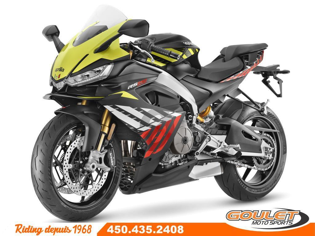 APRILIA RS 660 FACTORY - SHAKEDOWN YELLOW \*\*\* FRAIS DE TRANSPORT ET PRÉPARATION INCLUS DANS LE PRIX \*\*\* La nouvelle moto Aprilia RS 660 Factory transpose sur la route l'expérience gagnante de la piste et le savoir-faire Aprilia. Son design unique donne forme à une moto légère et compacte aux volumes élégants et agiles. - Nouveau bicylindre de 660 cm3 avec une nouvelle puissance record de 105 cv et un couple incroyablement élevé. - Nouveau pack électronique : Système Ride by Wire amélioré pour un contrôle plus précis de l'accélérateur et une gestion plus fluide de la puissance. - Nouvelle Suspension Öhlins: Fourche avant NIX et amortisseur arrière STX 46 entièrement réglable. - Système APRC: 5 modes de conduite, Contrôle de traction ajustable, Wheelie Control, Aprilia Quick Shift, Cruise Control - Commandes avec rétroéclairage LED : Les boutons sont désormais rétroéclairés, offrant une meilleure visibilité dans des conditions de faible éclairage. - Nouveau tableau de bord:couleur TFT plus grand (5pc), Bluetooth ready - Freins: ABS avec technologie Cornering - Groupe optique avantà 3 éléments, tous équipés de LED - Batterie au lithium Cette unité est chez Goulet Moto Sports de Ste-Thérèse. Téléphonez au 450.435.2408 Possibilité de financement avec plusieurs institutions financières. 2ième chance au crédit disponible. Option de financement Aprilia disponible sur PDSF Goulet Moto Sports est votre concessionnaire moto depuis 1968. Fier représentant officiel des marques HONDA, APRILIA, MOTO GUZZI, VESPA, PIAGGIO, KTM, NIU, SURRON et URAL pour le grand Montréal. Nous avons un énorme choix de moto usagés inspectées par nos professionnels. 2 adresses pour vous servir, soit à Sainte-Thérèse (450.435.2408) et Saint-Jérôme (450.431.6622). Goulet Moto Sports ne peut être tenu responsable d'une omission, d'un délai ou d'une erreur de transcription de l'information. Le prix affiché reflète la condition de l'unité. Pour différentes raisons les prix peuvent différer de ceux indiqués en ligne. Les données sont affichées à titre indicatif seulement et ne peuvent être considérées comme une information contractuelle. Nous vous encourageons vivement à nous consulter pour plus de détails avant de vous déplacer. Des frais tels que taxes, immatriculation, administrations ou autres peuvent s'appliquer. Se compare très avantageusement aux Yamaha R7, Honda CBR 650, Kawasaki Ninja 400RR, Kawasaki Ninja ZX-6R, Suziki GSX-8R, Triumph Daytona 660 Essence, Transmission: Manuelle, 6 vitesses, Système de refroidissement: Refroidi au liquide, 2 cylindres, 105.0 CV, 660.0 CC, Garantie: 2 ans ---------------------- APRILIA RS 660 FACTORY - SHAKEDOWN YELLOW \*\*\* SHIPPING AND PREPARATION INCLUDED IN THE PRICE \*\*\* The new Aprilia RS 660 Factory motorcycle brings Aprilia's winning track experience and expertise to the road. Its unique design creates a lightweight and compact bike with elegant and agile dimensions. - New 660cc twin-cylinder engine with a new record-breaking 105 hp and incredibly high torque. - New electronics package: Improved Ride by Wire system for more precise throttle control and smoother power management. - New Öhlins Smart EC 2.0 suspension for a more dynamic ride and better adaptation to road conditions. APRC System: 5 riding modes, Adjustable Traction Control, Wheelie Control, Aprilia Quick Shift, Cruise Control - LED Backlit Controls: Buttons are now backlit, providing better visibility in low-light conditions. - New Instrument Panel: Larger (5-piece) TFT color, Bluetooth ready - Brakes: ABS with Cornering Technology - 3-element front headlight assembly, all equipped with LEDs - Lithium Battery This unit is at Goulet Moto Sports in Ste-Thérèse. Call 450.435.2408 Financing available with several financial institutions. Second chance credit available. Aprilia financing option available on MSRP Goulet Moto Sports has been your motorcycle dealer since 1968. Proud official representative of the HONDA, APRILIA, MOTO GUZZI, VESPA, PIAGGIO, KTM, NIU, SURRON, and URAL brands for the greater Montreal area. We have a huge selection of used motorcycles inspected by our professionals. We have two locations to serve you: Sainte-Thérèse (450.435.2408) and Saint-Jérôme (450.431.6622). Goulet Moto Sports cannot be held responsible for any omissions, delays, or errors in the transcription of information. The price displayed reflects the condition of the unit. For various reasons, prices may differ from those indicated online. The data displayed is for informational purposes only and should not be considered contractual information. We strongly encourage you to contact us for more details before visiting. Fees such as taxes, registration, administration, and other charges may apply. Compares very favorably to the Yamaha R7, Honda CBR 650, Kawasaki Ninja 400RR, Kawasaki Ninja ZX-6R, Suzuki GSX-8R, and Triumph Daytona 660. Gasoline, Transmission: Manual, 6 speeds, Cooling System: Liquid cooling, 2 cylinders, 105.0 HP, 660.0 CC, Warranty: 2 ans