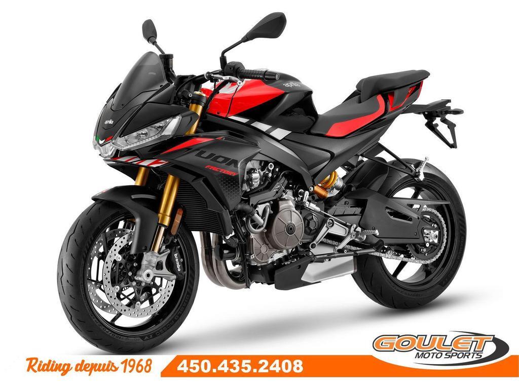 APRILIA TUONO 660 FACTORY - DARK BANSHEEE \*\*\* FRAIS DE TRANSPORT ET PRÉPARATION INCLUS DANS LE PRIX \*\*\* La version Factory de la Tuono 660 emprunte des équipements de la RS660 comme le quickshift ou la centrale d'inertie 6 axes IMU, en plus d'avoir une suspension et un amortisseur plus performant avec plus de possibilité d'ajustements. - Le nouveau bicylindre de 660 cm3 avec une puissance record de 105 cv et un couple incroyablement élevé.- - Commandes avec rétroéclairage LED: Les boutons sont désormais rétroéclairés, - Amortisseur SACHS avec réservoir séparé est réglable en compression, détente et précharge. - Suspension avant Kayaba est aussi ajustable (compression, rebound damping et pre-load) - Système APRC, modes de conduite, Contrôle de traction ajustable, Anti-wheelie, frein moteur, cruise control - Nouveau Tableau de bord couleur TFT 5pc, Bluetooth ready - Groupe optique avant à 3 éléments, tous équipés de LED. - Nouveau carénage aérodynamique avec effet downforce - Position de conduite plus confortable. Cette unité est chez Goulet Moto Sports de Ste-Thérèse. Téléphonez au 450.435.2408 Possibilité de financement avec plusieurs institutions financières. 2ième chance au crédit disponible. Financement spécial de Aprilia disponible sur prix PDSF. Goulet Moto Sports est votre concessionnaire moto depuis 1968. Fier représentant officiel des marques HONDA, APRILIA, MOTO GUZZI, VESPA, PIAGGIO, KTM, NIU, SURRON et URAL pour le grand Montréal. Nous avons un énorme choix de moto usagés inspectées par nos professionnels. 2 adresses pour vous servir, soit à Sainte-Thérèse (450.435.2408) et Saint-Jérôme (450.431.6622). Goulet Moto Sports ne peut être tenu responsable d'une omission, d'un délai ou d'une erreur de transcription de l'information. Le prix affiché reflète la condition de l'unité. Pour différentes raisons les prix peuvent différer de ceux indiqués en ligne. Les données sont affichées à titre indicatif seulement et ne peuvent être considérées comme une information contractuelle. Nous vous encourageons vivement à nous consulter pour plus de détails avant de vous déplacer. Des frais tels que taxes, immatriculation, administrations ou autres peuvent s'appliquer. Se compare à une Ducati Monster, Yamaha MT-07, Kawasaki Ninja 650, Honda CB650R, Suzuki GSX750F ou une KTM Duke 890 Essence, Transmission: Manuelle, 6 vitesses, Système de refroidissement: Refroidi au liquide, 2 cylindres, 105.0 CV, 660.0 CC, Garantie: 2 ans ---------------------- APRILIA TUONO 660 FACTORY - DARK BANSHEEE \*\*\* SHIPPING AND PREPARATION INCLUDED IN THE PRICE \*\*\* The Factory version of the Tuono 660 borrows features from the RS660, such as the quickshift and the 6-axis IMU, in addition to featuring more efficient suspension and shock absorbers with greater adjustment options. - The new 660cc twin-cylinder engine with a record 105 hp and incredibly high torque. - LED-backlit controls: The buttons are now backlit. - SACHS shock absorber with separate reservoir is adjustable for compression, rebound, and preload. - Kayaba front suspension is also adjustable (compression, rebound damping, and preload). - APRC system, riding modes, adjustable traction control, anti-wheelie, engine braking. cruise control - New 5inch TFT color instrument panel, Bluetooth ready. - 3-element front headlight cluster, all equipped with LEDs. - New aerodynamic fairing with downforce effect. - More comfortable riding position. This unit is at Goulet Moto Sports in Ste-Thérèse. Call 450.435.2408. Financing available with several financial institutions. Second chance credit available. Special Aprilia financing available on MSRP. Goulet Moto Sports has been your motorcycle dealership since 1968. Proud official representative of HONDA, APRILIA, MOTO GUZZI, VESPA, PIAGGIO, KTM, NIU, SURRON, and URAL for the greater Montreal area. We have a huge selection of used motorcycles inspected by our professionals. We have two locations to serve you: Sainte-Thérèse (450.435.2408) and Saint-Jérôme (450.431.6622). Goulet Moto Sports cannot be held responsible for any omissions, delays, or transcription errors. The price displayed reflects the condition of the unit. For various reasons, prices may differ from those shown online. The data displayed is for informational purposes only and should not be considered contractually binding. We strongly encourage you to contact us for more details before your visit. Fees such as taxes, registration, administration, and other charges may apply. Compare to a Ducati Monster, Yamaha MT-07, Kawasaki Ninja 650, Honda CB650R, Suzuki GSX750F, or a KTM Duke 890 Gasoline, Transmission: Manual, 6 speeds, Cooling System: Liquid cooling, 2 cylinders, 105.0 HP, 660.0 CC, Warranty: 2 ans
