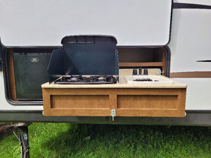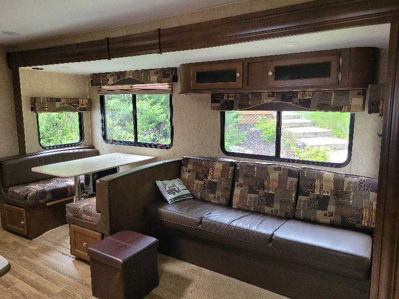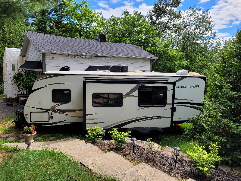 Roulotte Sporttrek 2015 de 27' (sortie du concessionnaire en 2016). Peut coucher jusqu'à 10 personnes. Chambre fermée avec lit queen, 2 lits double superposés. Extension pour table de cuisine et divan. Cuisinette extérieure avec 2 brûleurs, lavabo et frigidaire. Beaucoup de rangement, toilette neuve avec cuve en porcelaine. Plafond intérieur de 6'10'' avec 2 puits de lumière. Auvent de 20', pneus changés en 2020. Beaucoup d'accessoires d'inclus, très bien entretenue, livraison possible. Abri d'hiver mono-pente aussi disponible (non-inclus au prix)