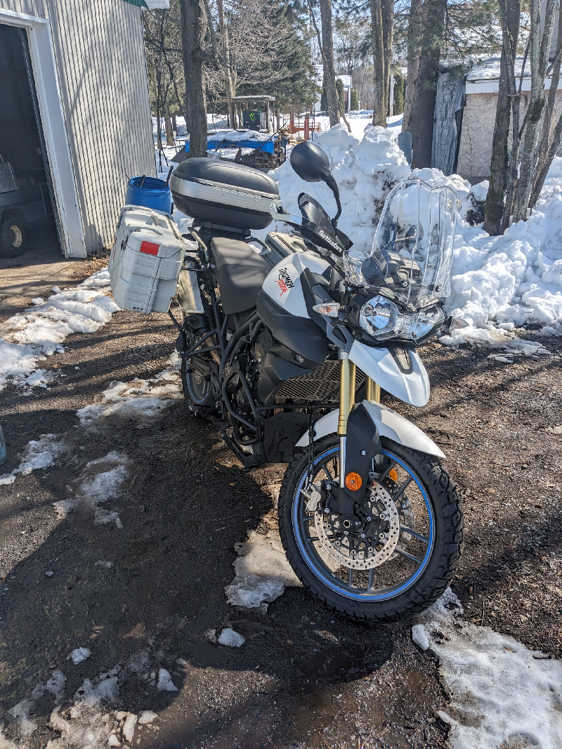 Tiger 800 2012 fonctionne très bien bas kilométrage. Beaucoup d'accessoires, valise hepco & becker, protège main barkbuster, skid plate t-rex, protège radiateur r&g, crash bar Triumph, 2 prise usb. Pneu avant neuf. Vendu sans top case.