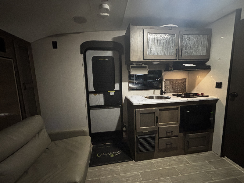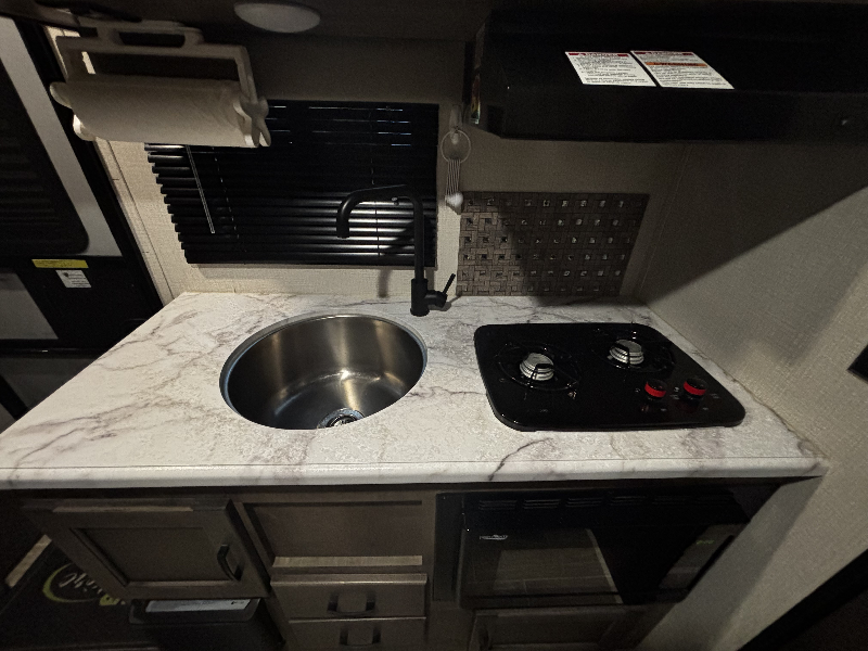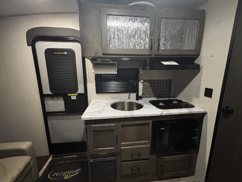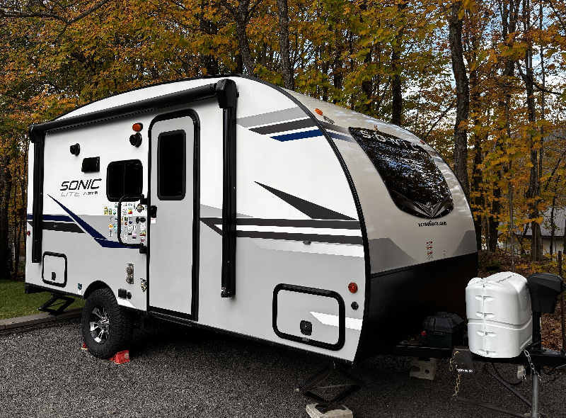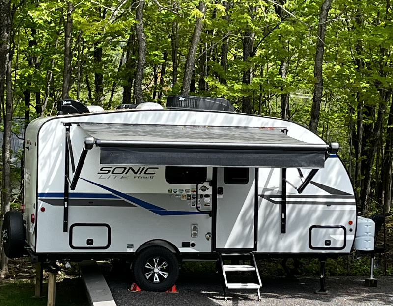 Roulotte 2021 Venture RV Sonic Lite 150VRB idéale pour un couple. Revêtement extérieur en fibre de verre, auvent électrique, jantes en aluminium et marchepied en aluminium solide. Lit escamotable sur un sofa incluant une table amovible. Salle de bain munie d?un grand rangement, grande douche vitrée, toilette en porcelaine et lavabo en acier inoxydable. Frigidaire 8 pi cu au propane et électrique, micro-ondes à convection, plaque de cuisson au propane à 2 brûleurs et évier en acier inoxydable. Également inclus dans le prix : barres stabilisatrices « SwayPro Blue-Ox » avec attache, double réservoir propane, routeur King wifi et aussi housse pour hiver.