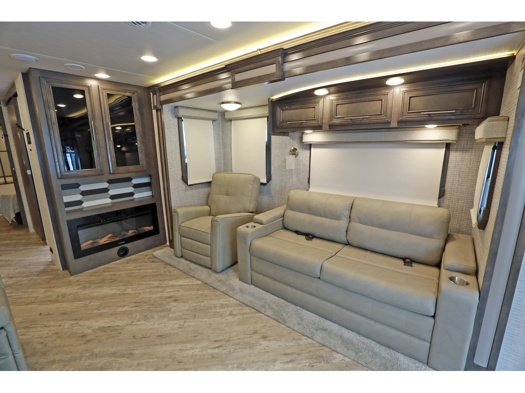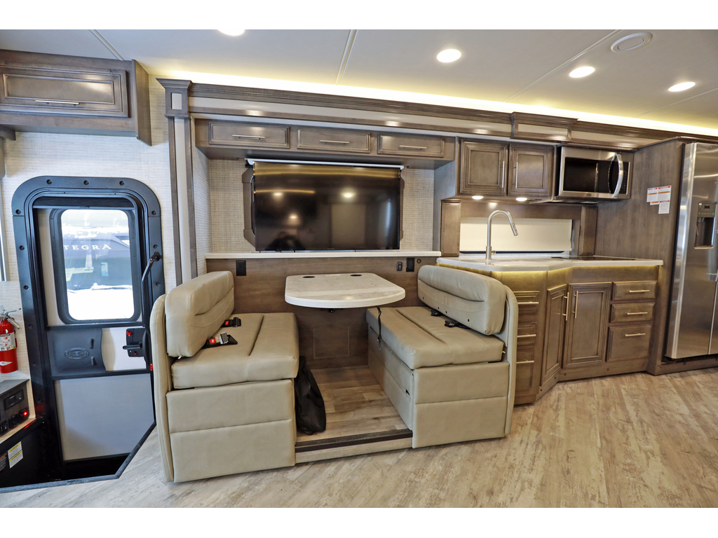 Entegra Coach Emblem 36H .L'Entergra Coach Emblem est construit dans un esprit résidentiel et vous attend pour votre prochaine aventure. Ce magnifique VR dispose d'un lit king-size et d'un aménagement confortable et spacieux. Ce véhicule récréatif incroyable offre un ensemble de valeur client qui comprend un générateur de 5500 Watts Onan, un service de 50 ampères, des vérins hydrauliques automatiques, un système de surveillance à 3 caméras, un auvent électrique avec lumières LED, des fenêtres sans cadre, stores à rouleau, slide toppers coulissants et comptoirs de cuisine et de salle de bain à surface solide. L'équipement en option comprend un lit superposé à l'avant avec une capacité de 750 livres, une plaque a induction et une entré laveuse et sécheuse. La liste impressionnante de caractéristiques standard de l'emblème qui la distinguent vraiment de la concurrence comprend la garantie inégalée d'Entegra de 2 ans, des compartiments de rangement verrouillables, Peinture complète, un pare-brise panoramique, four à micro-ondes en acier inoxydable, toit en fibre de verre couronné sans soudure, onduleur de 2 000 watts, guides de tiroir à roulement à billes, grand réfrigérateur résidentiel, grande douche et bien plus encore. www.citecaravane.com 450-623-5050 170 Rue dubois st-eustache Entegra Coach Emblem 36H The Entegra Coach Emblem is built with a residential feel will have you longing for your next adventure. This beautiful RV features a king size bed and a comfortable, spacious layout. This amazing RV boasts Customer Value Package which features a 5500 Watt Onan generator, 50 amp service, automatic hydraulic leveling jacks, 3 camera monitoring system, electric awning with LED lights, exterior entertainment center, frameless windows, infotainment center, LED TV in living room, roller shades, slideout toppers and solid surface kitchen and bathroom countertops. Optional equipment includes a front overhead bunk with 750-pound rating, induction cooktop , washer and dryer prep. The Emblem's impressive list of standard features that truly set it apart from the competition include Entegra's unparalleled 2 year warranty, lockable slam latch storage compartments, one-piece fiberglass front and rear caps, panoramic windshield with power shade, 6-way power driver's seat, stainless convection microwave, seamless crowned fiberglass roof, 2000 watt inverter, ball-bearing drawer guides, large residential refrigerator,, large shower and much more. www.citecaravane.com 450-623-5050 170 Rue dubois St-eustache !