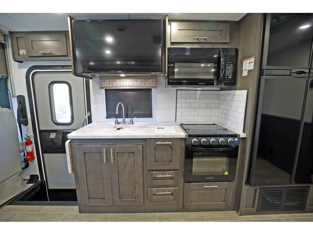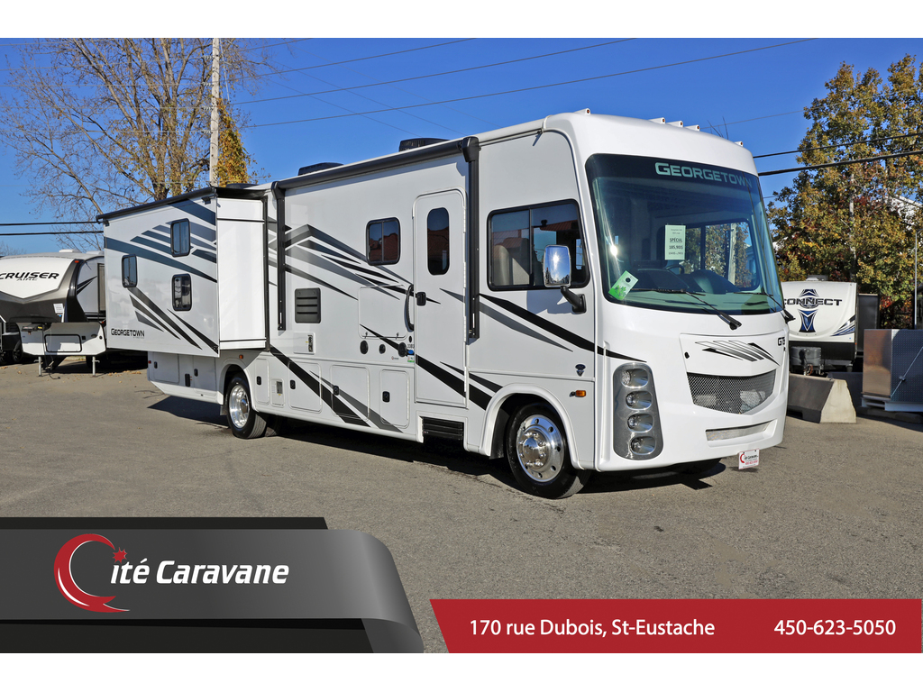 Forest River Georgetown GT3 33B3 Classe A avec l'intérieur Granite. Son équipement complet débute par 2 extensions , caméras latérales et arrière, artic pack (4 saisons), toît une pièce en fibre de verre, murs extérieurs 2¨ avec finition Gel Coat et fabrication de type Vacuum Bonded, portes de coffres avec pentures latérales, black tank flush (système de nettoyage de la fosse deaux noires), éclairage dans les coffres extérieurs, alimentation électrique 50 ampères, auvent principale électrique, auvents protecteurs au-dessus des extensions, stabilisateurs hydrauliques automatiques, génératrice A/C au toît, attache remorque 5000 lbs, revêtement de plancher de qualité supérieure (Beauflor), chauffe-eau 6 gal, antenne automatique, fantastic fan, lit king, 2 T.V., lit au-dessus des sièges conducteur et passager, lecteur AM/FM/DVD/Bluetooth & USB intégré!!! Contactez-nous pour profiter du MEILLEUR PRIX AU QUÉBEC, www.citecaravane.com 877-500-5394 170 Rue Dubois, St-Eustache J7P 4W9 Forest River Georgetown GT3 33B3 Class A with Granite interior. Its complete equipment starts with 2 slide out , back up + side cameras, artic pack (4 seasons), fiberglass roof, 2¨exterior walls with Gel Coat finish and Vacuum Bonded type construction, Lots of starage , black tank flush, exterior storage lighting, 50 amp power supply, electric awning, slide topper, automatic hydraulic stabilizers, generator,roof A/C , 5000 lbs trailer hitch, high quality floor covering (Beauflor), 6 gal water heater, automatic antenna, fantastic fan, king bed, 2 TV, bed driver and passenger seats, AM / FM / DVD / Bluetooth player & USB built-in !!! Contact us to take advantage of the BEST PRICE IN QUEBEC, www.citecaravane.com 877-500-5394 170 Rue Dubois, St-Eustache J7P 4W9