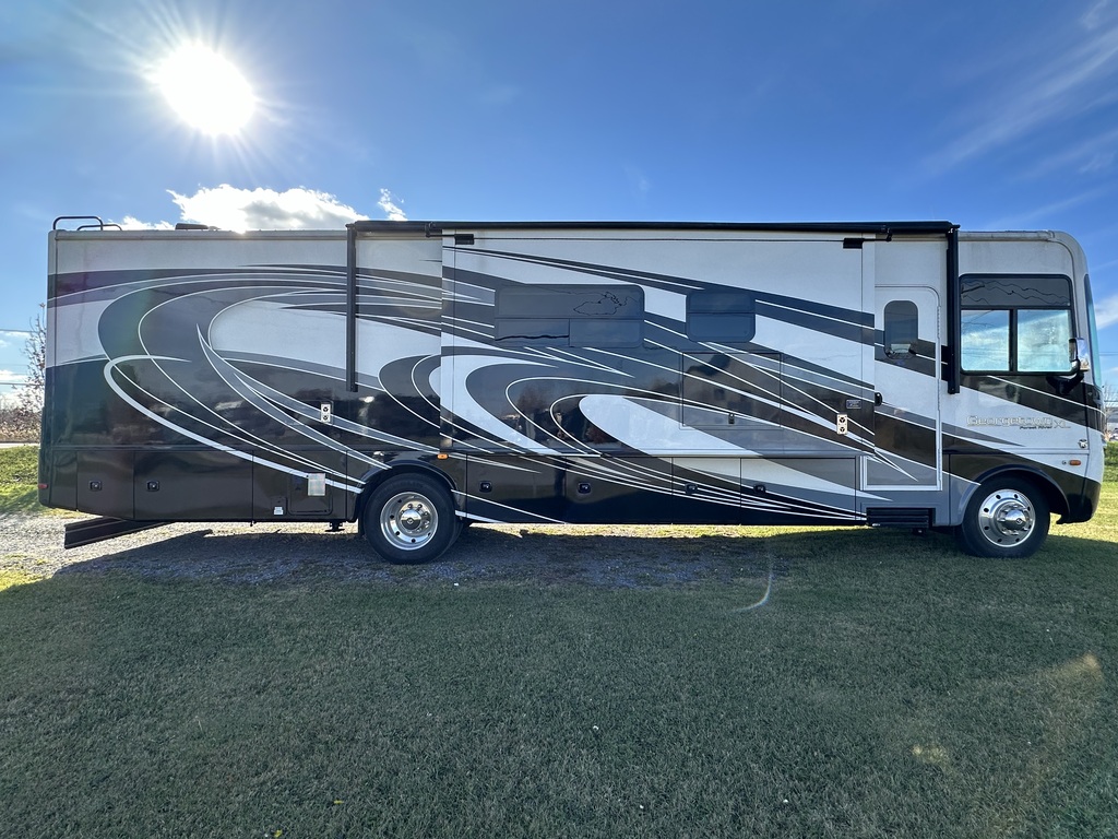 Options : Génératrice à essence, Réservoir de propane, Climatiseur conduit central, Sièges électriques, Miroirs électriques, Régulateur de vitesse, Volant inclinable, Caméra Marche arrière, Cric hydraulique, Échelle, Attache-remorque, Douche, Toilette, Laveuse, Sécheuse, Lit queen-size, Prise électrique, Téléviseur, Antenne pour téléviseur, Micro-onde, Cuisinière, Four, Fourneau, Auvent, Chauffe-eau ***Consignation / Payez une seule taxe !!*** Superbe motorisé classe A 2017 Forest River Georgetown XL 377TS avec moteur Ford V10 320 HP, 3 extensions, génératrice Onan 5500W, frigo résidentiel, lit escamotable avant, lit queen 60X80 et encore plus... We also speak english Voir www.superieurvr.com pour plus de photos Un véhicule récréatif demeure la meilleure manière de voyager en toute sécurité en protégeant votre santé et celle des personnes qui vous sont chères! Financement disponible et échange accepté Appelez nous sans frais au 1-888-756-0481 Supérieur VR c’est 15 ans d'expérience à votre service. Des techniciens formés, accrédités et expérimentés. C’est 10 baies de service: mécanique, habitation, esthétique, atelier de carrosserie complet avec chambre à peinture grand format (50 pieds). Centre de service autorisé pour les génératrices Onan Cummins, systèmes de chauffage Aqua Hot, Hydro hot, precision temps et Oasis. Nous vendons des motorisés usagés certifiés. Nous avons aussi des motorisés neufs de marque Coachmen Sportscoach, Encore, Mirada et Pursuit. Nous sommes aussi détaillant du manufacturier Gulfstream pour les marques Conquest et BT CRUISER. Sans oublier le manufacturier Holiday Rambler pour les marques Admiral, Eclipse, Invicta et Vacationer. De plus, nous avons un vaste choix de pièces sur place. Garantie : Motorisé en consignation...aucune garantie donnée par le commerçant. Garantie supplémentaire disponible.